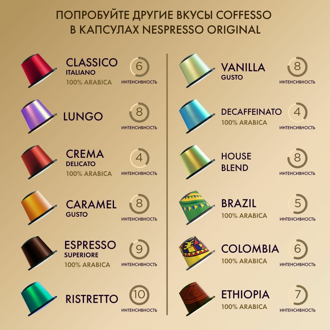 Кофе Coffesso "Crema Delicato" в капсулах для кофемашины Nespresso, 10 капсул