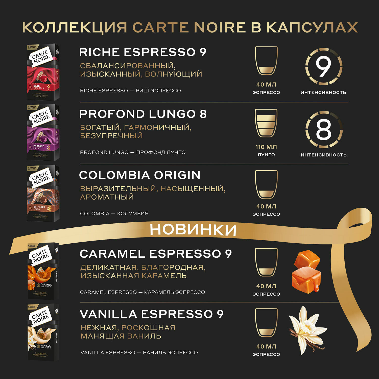 Ниже Вы можете прочитать отзывы на Кофе капсульный Carte Noire Espresso Caramel, для системы Nespresso, 10 шт., ознакомится с подробными характеристиками, посмотреть интересные обзоры и фотографии на Кофе капсульный Carte Noire Espresso Caramel, для системы Nespresso, 10 шт..