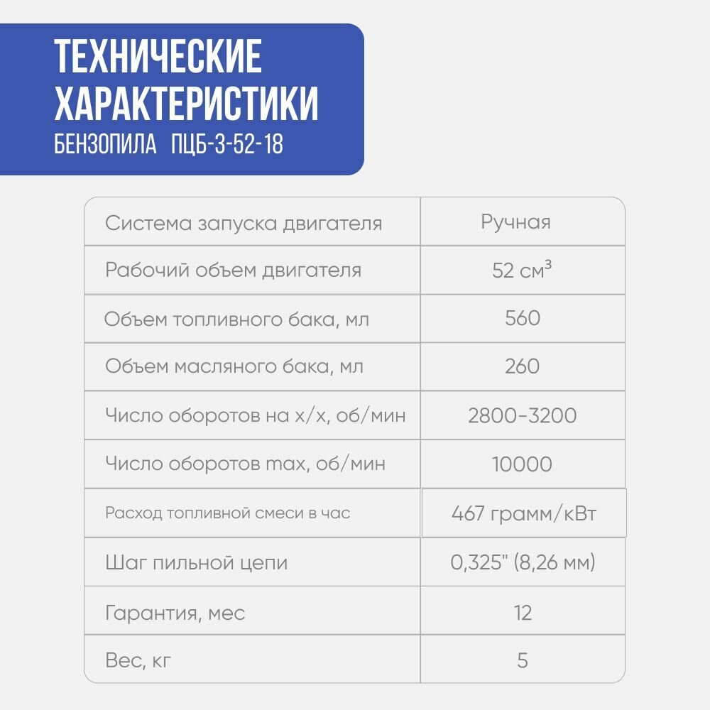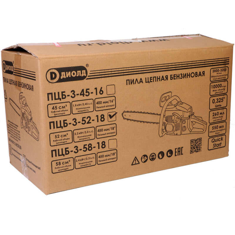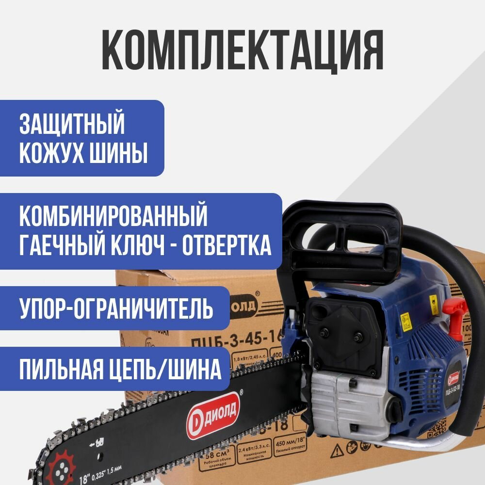 Бензопила Диолд ПЦБ-3-52-18/10000 об/мин/2,2/3,0 кВт/л. с. интересное: