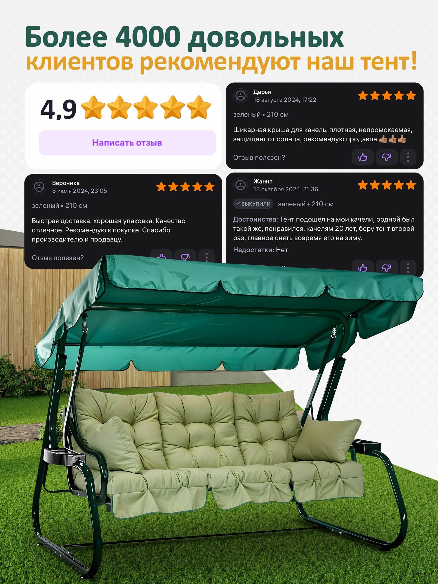 СохранитьТент JEONIX для качелей Оазис (206х124 см) зеленый, водонепроницаемый интересное: