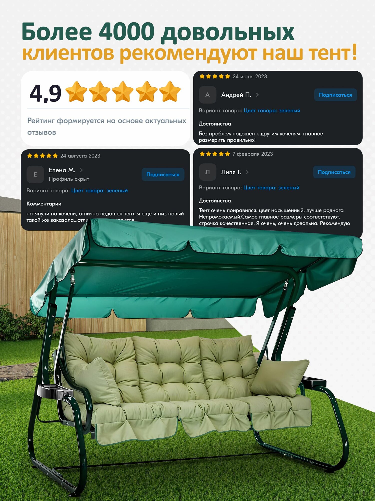 Тент JEONIX для качелей Элит Люкс плюс (240х123 см) зеленый, водонепроницаемый