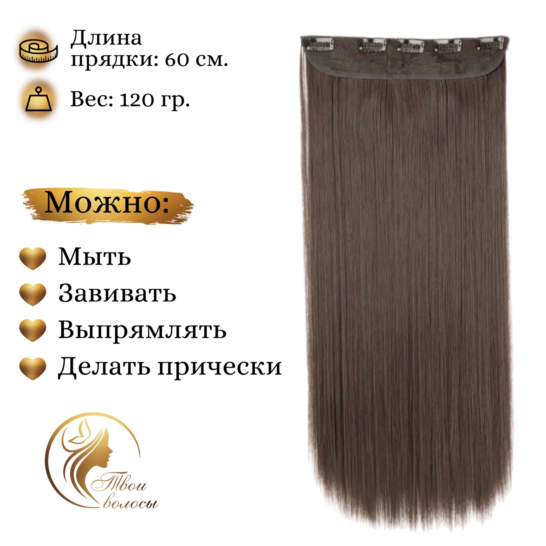 Широкая прядь-хвост, волосы накладные на заколках прямые 60 см, Коричневый интересное: