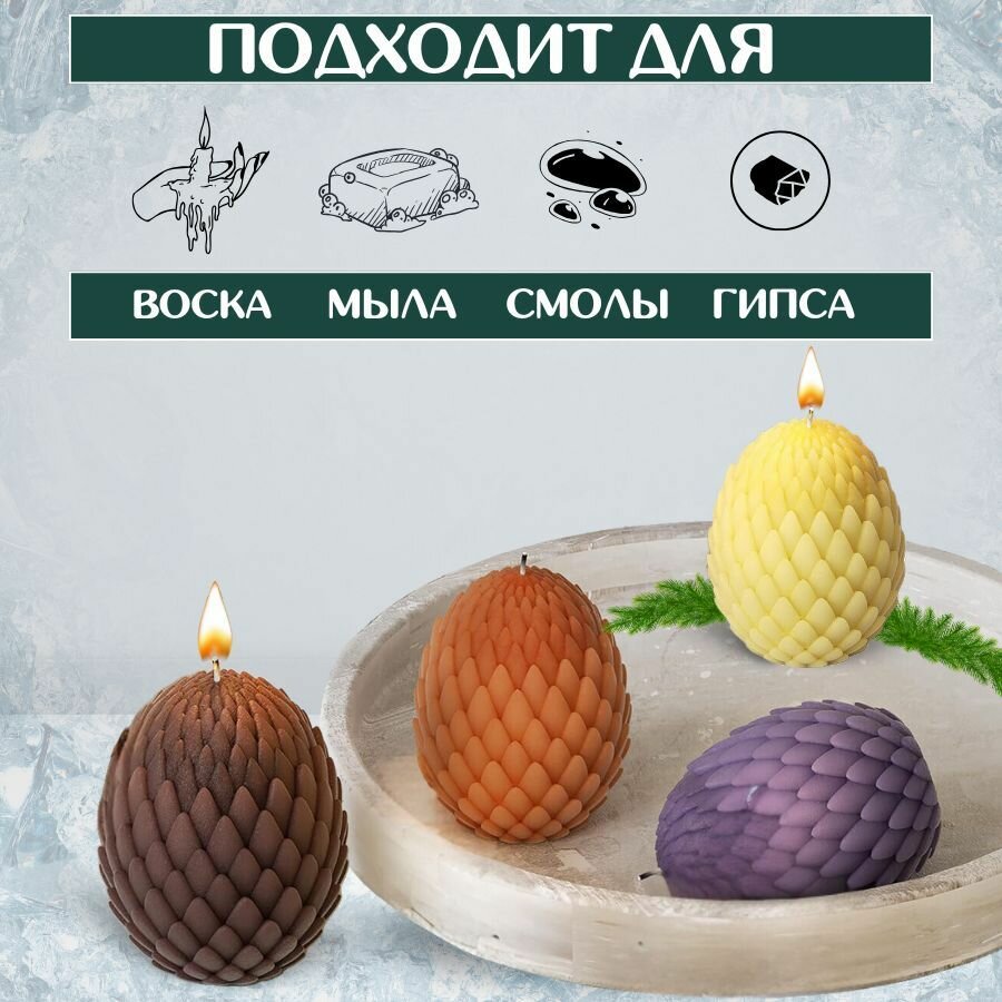 Силиконовая форма для изготовления свечей / Молд для свечей силиконовый Шишка интересное: