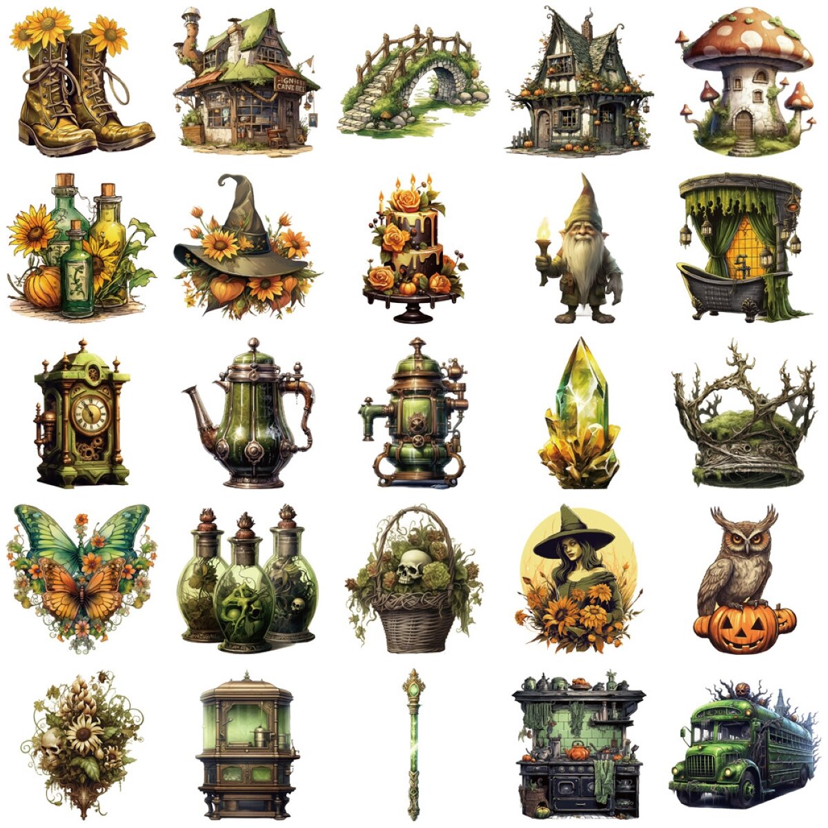 Купить Наклейки на телефон, чемодан, кляссер "Болотная ведьма", винил, многоразовые, 50 шт. Voropaeva11
