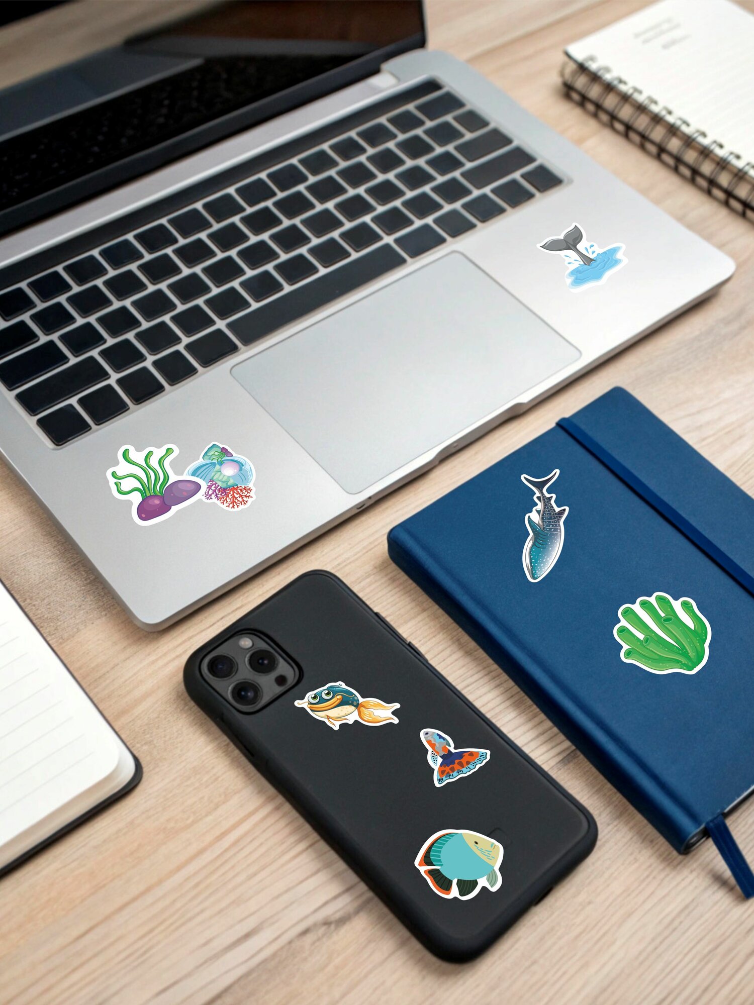 Наклейки для детей "Рыбки", 97 шт., 18 листов А6. Стикеры на телефон, ноутбук, чехол, аниме, на стену. Набор для творчества и декора, BulbaCraft