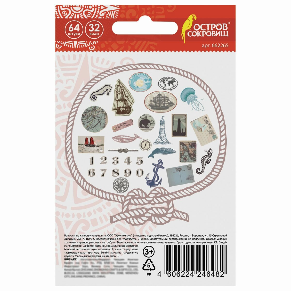 Купить Наклейки для скрапбукинга Остров Сокровищ Путешествие из washi-бумаги, 64шт, 32 дизайна (662265), 10 уп.