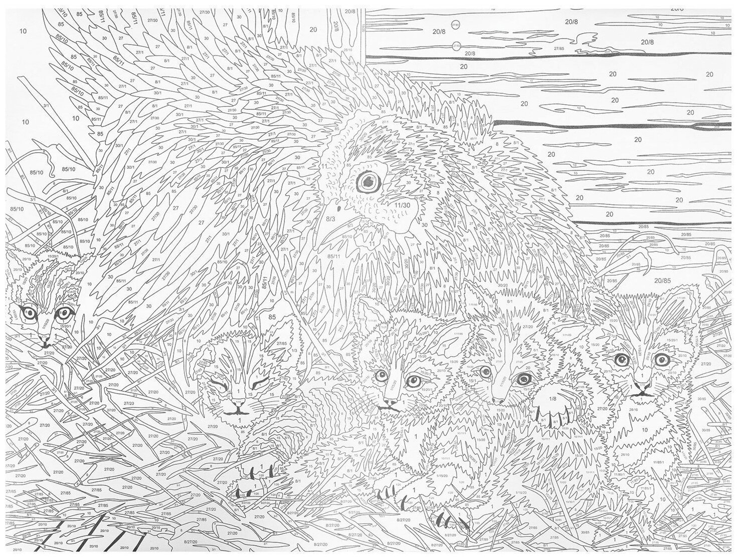 | Комплектация | 1 хлопковый холст на подрамнике с контуром, 1 лист бумаги для тренировки, 26 акриловых красок объемом 3 мл каждая, 3 синтетические кисти и комплект металлических креплений для подвешивания на стену |