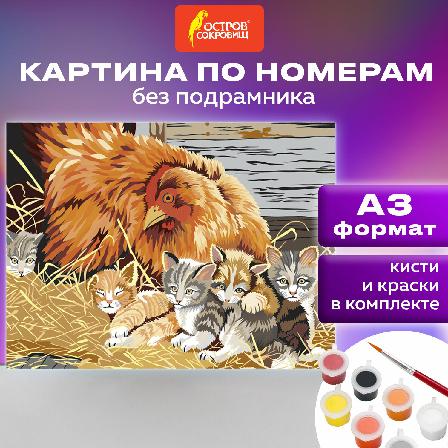 Купить Картина по номерам Остров сокровищ В курятнике, А3, с акриловыми красками, картон, кисть