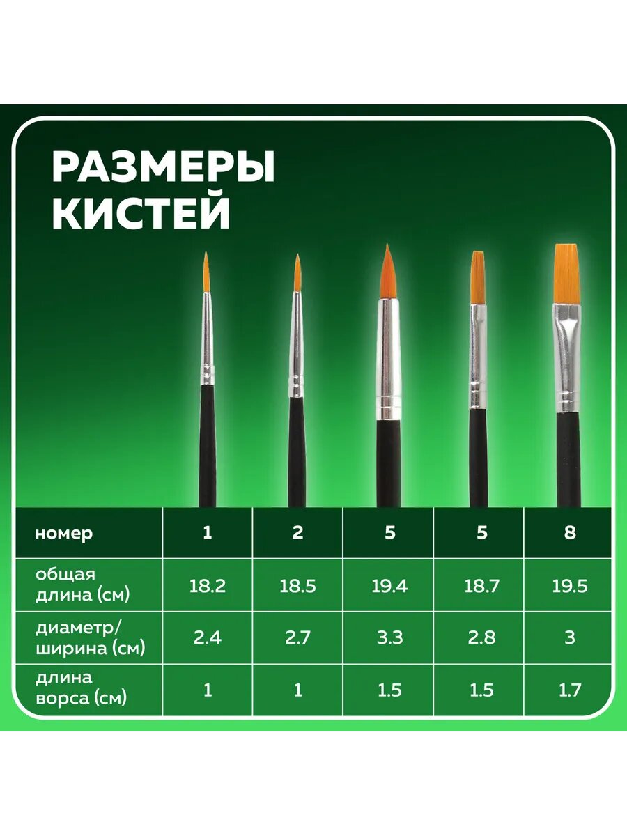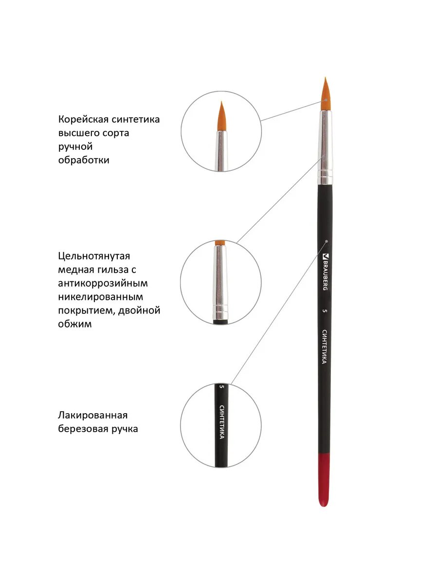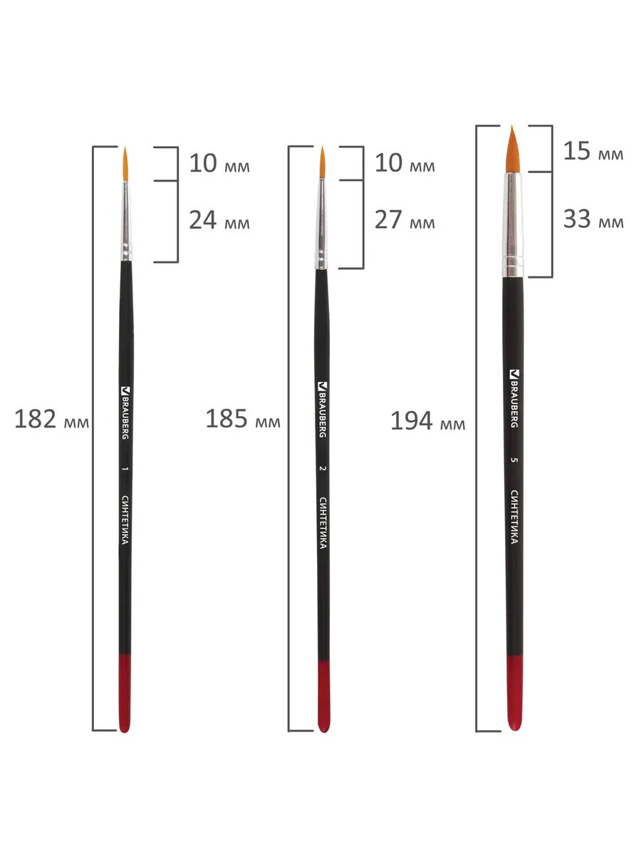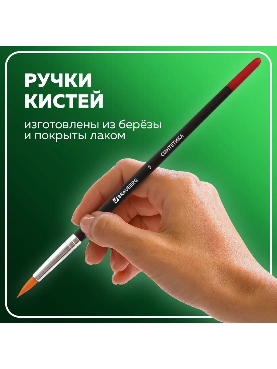 Кисти BRAUBERG, набор 5 шт. (синтетика, круглые № 1, 2, 5, интересное: