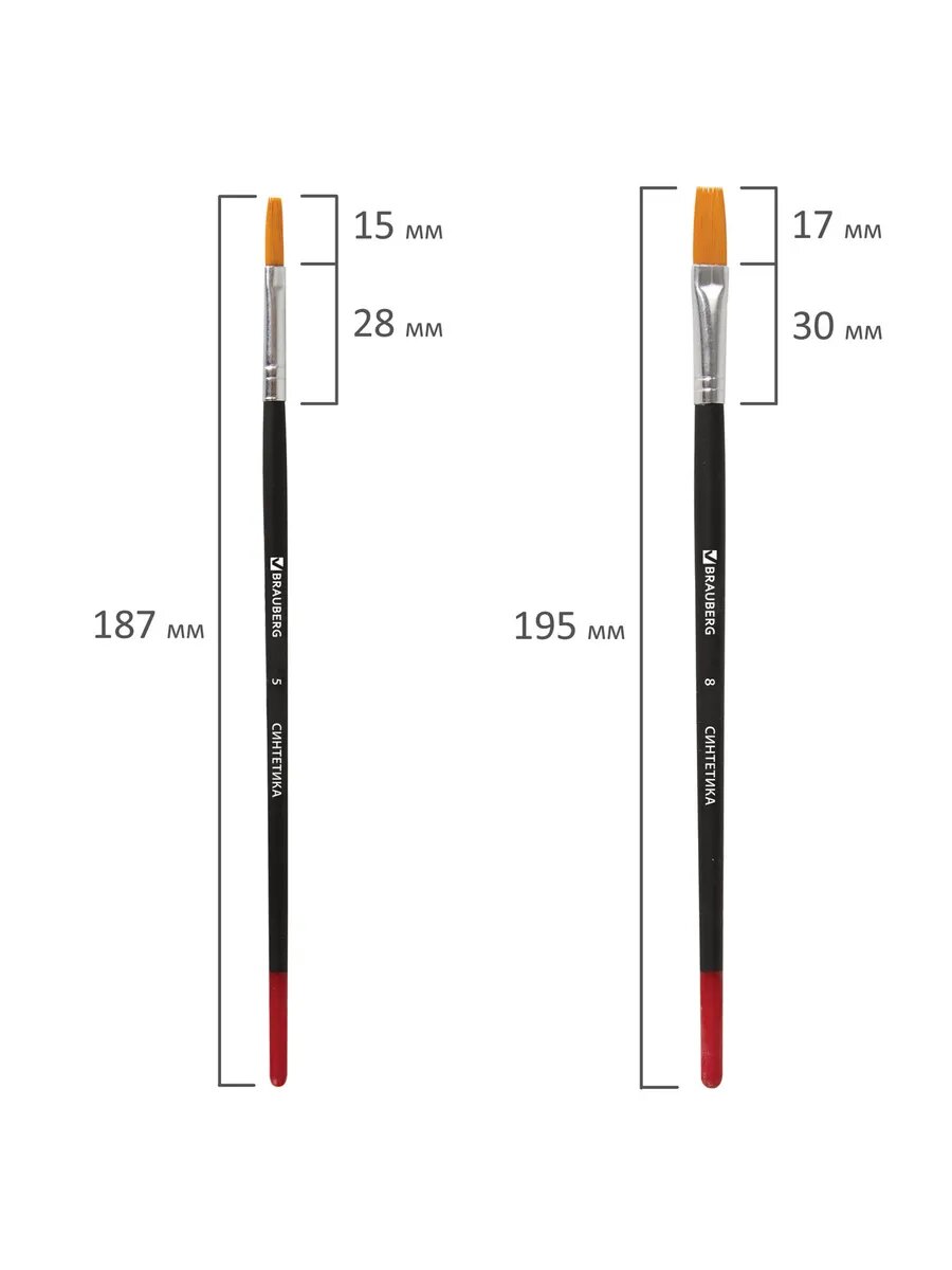 Набор кистей Brauberg, синтетика, круглые №1,2,5, плоские №5,8, блистер 5шт. (200219), 12 уп.