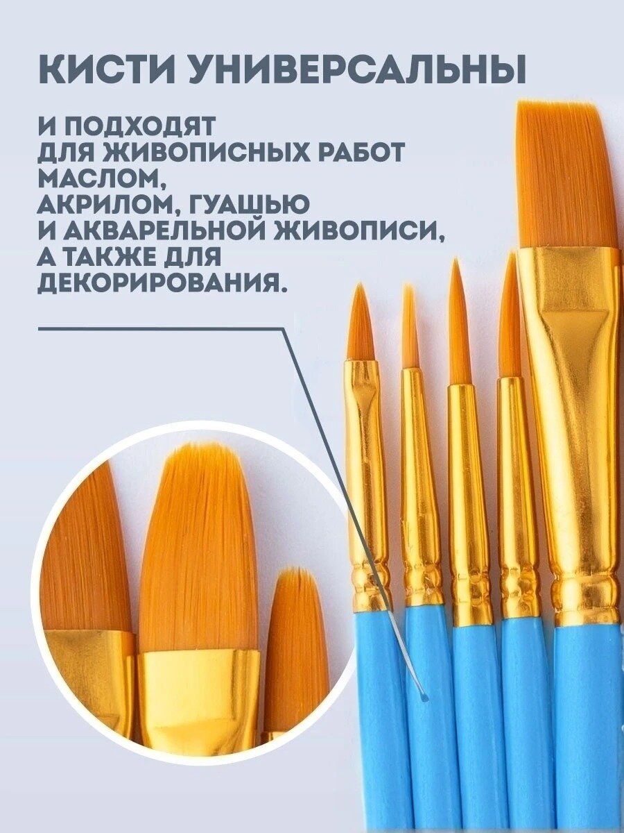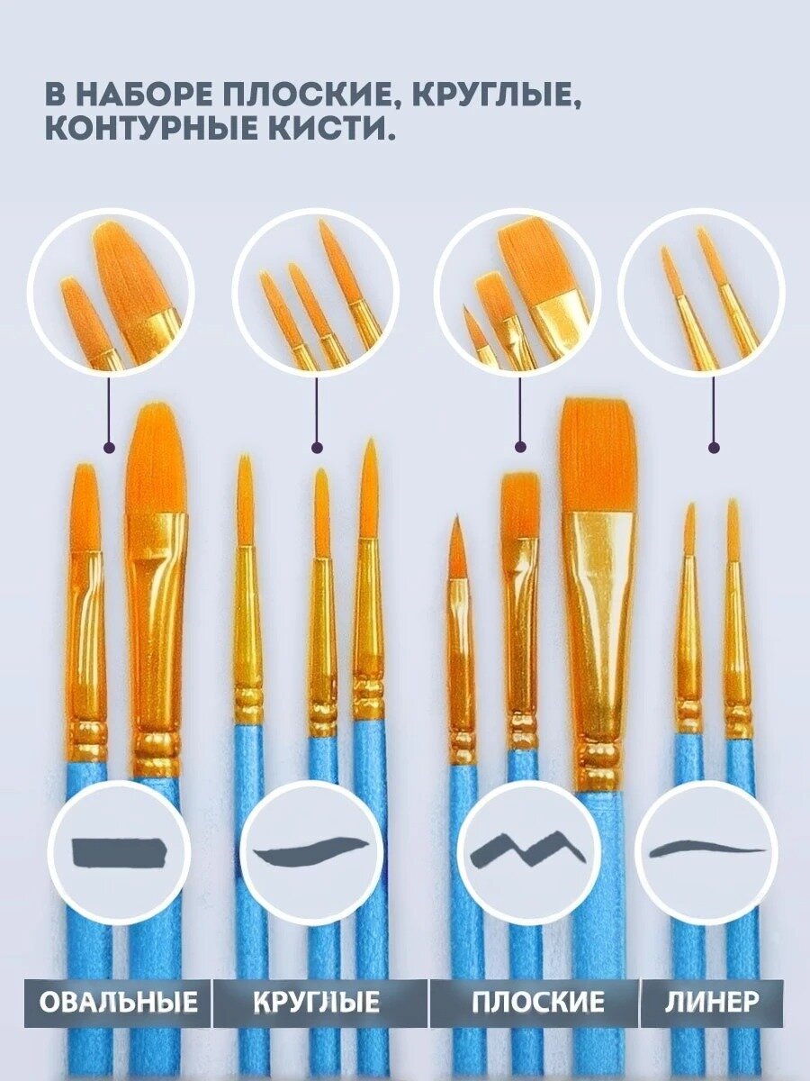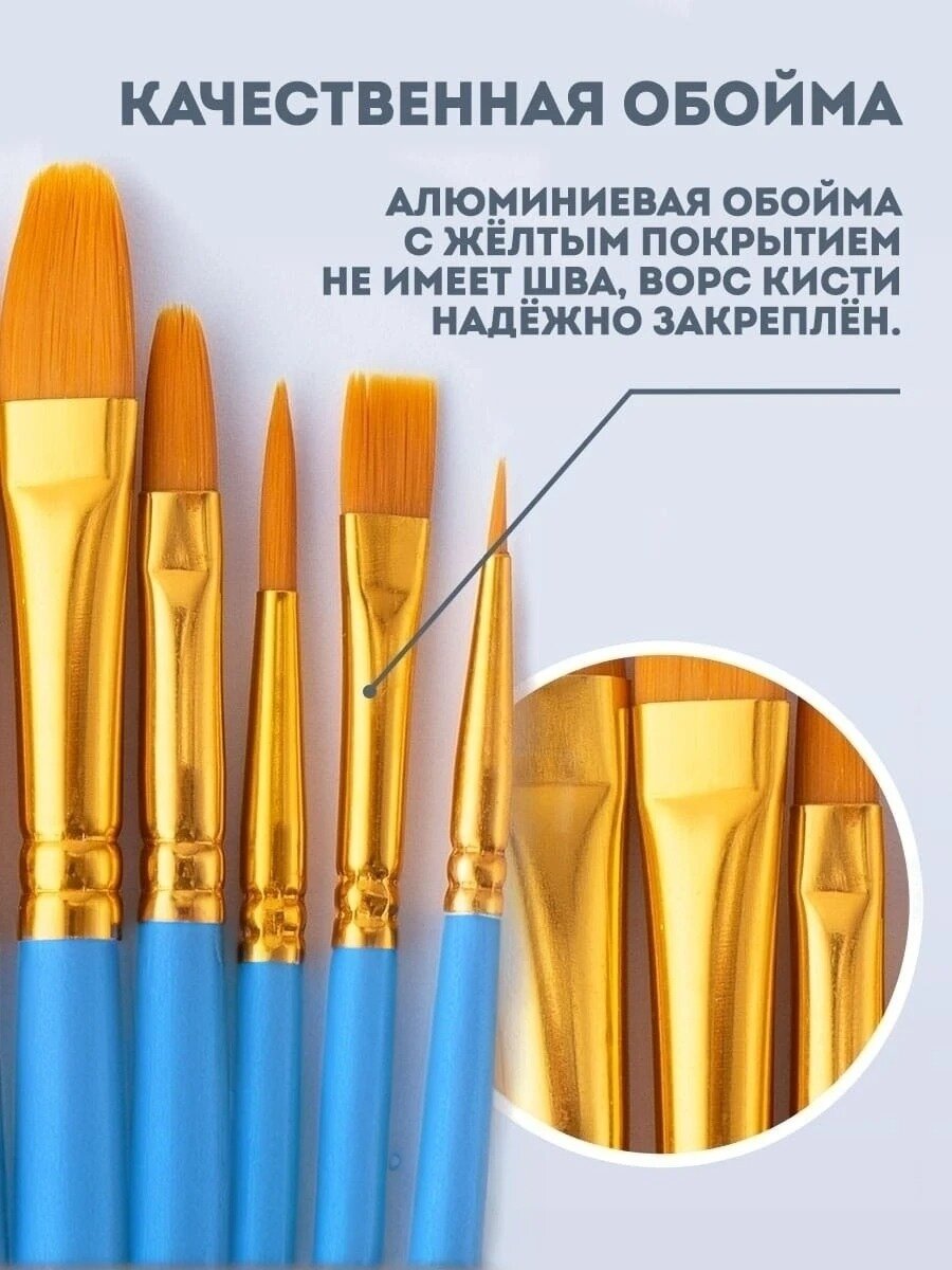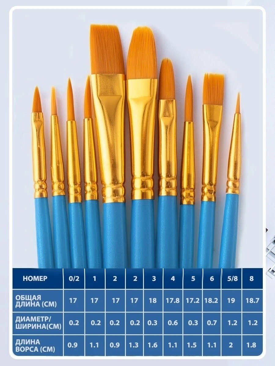 СохранитьКисти художественные для рисования и творчества, набор 10шт, синтетика. Для акварели, акрила, масляных красок, гуаши. Голубой цвет. интересное: