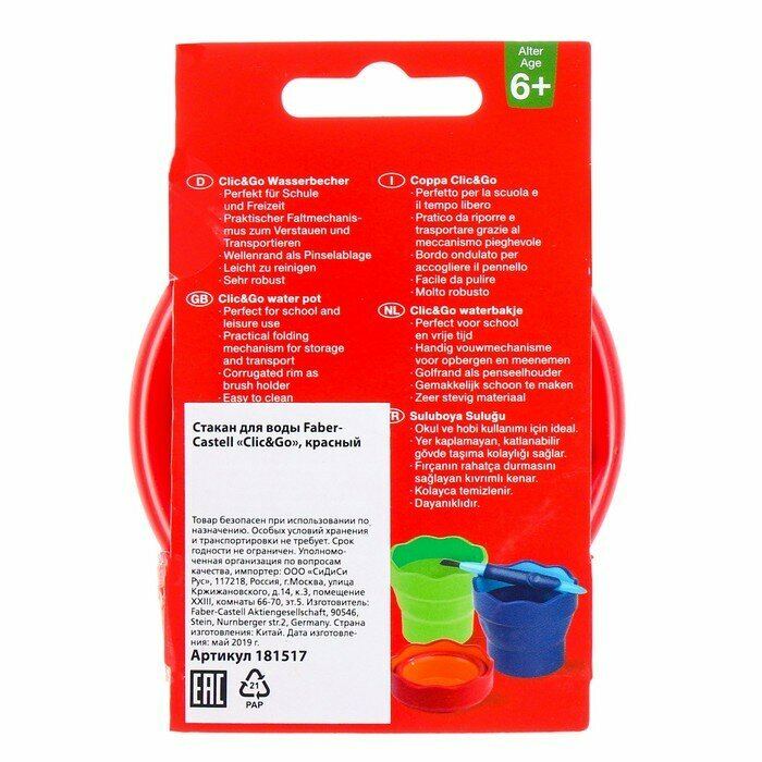 Faber-Castell Стаканчик для воды складной "Clic&Go" красный sela25 интересное:
