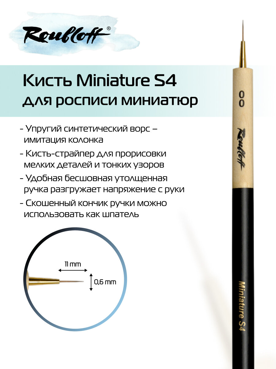 Купить Кисть Roubloff Миниатюра лайнер № 00 из синтетики имитация колонка, ручка скошенная утолщенная