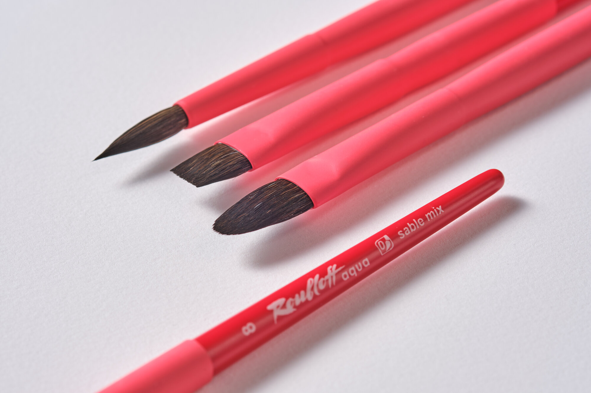 Roubloff Aqua Red round кисть художественная соболь микс для акварели № 3 круглая, покрытие soft-touch