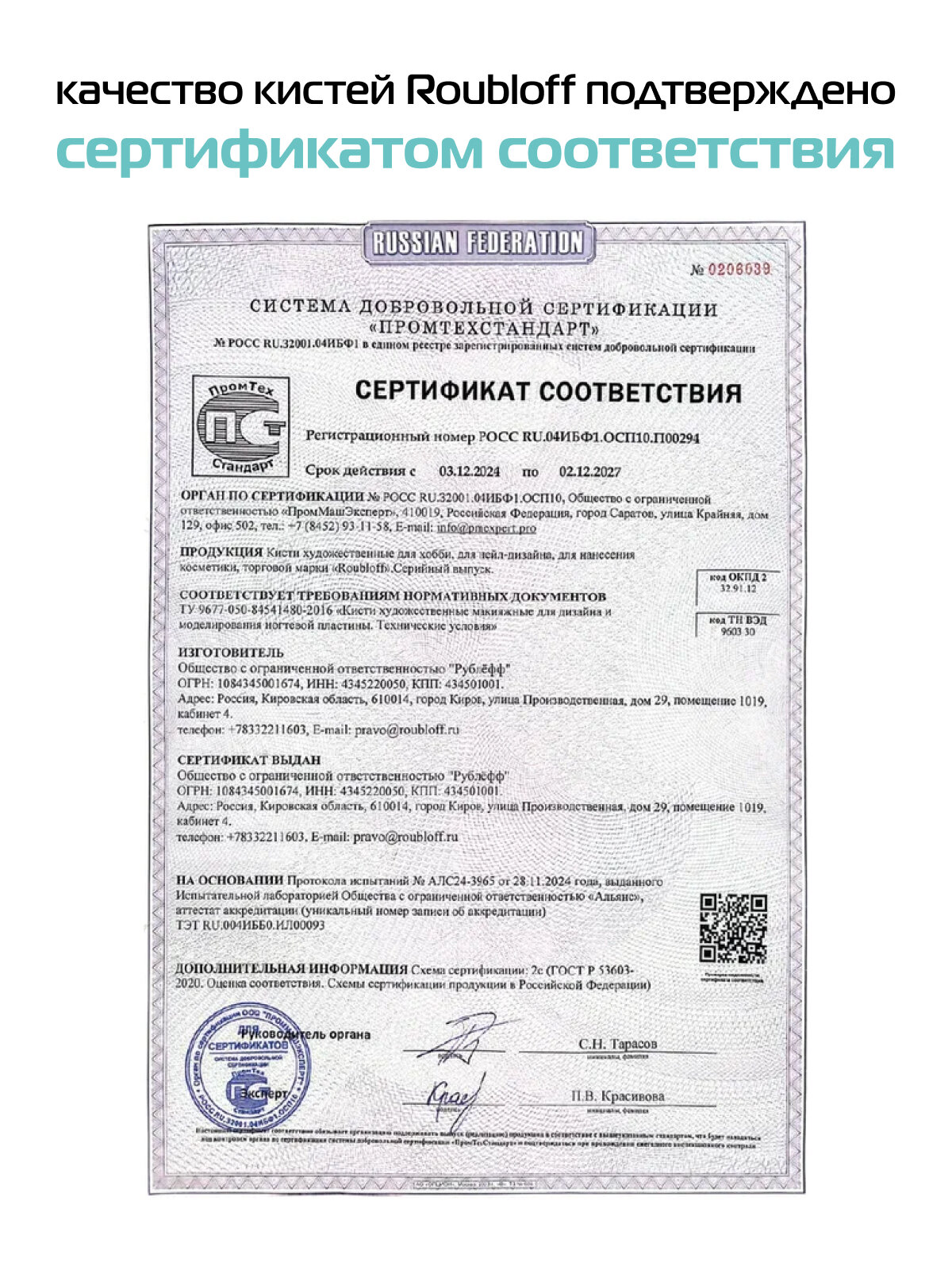 | Номер кисти | №0, №00, №1, №1,2, №1,5, №1,7, №12, №2, №3, №4, №6, №8 |