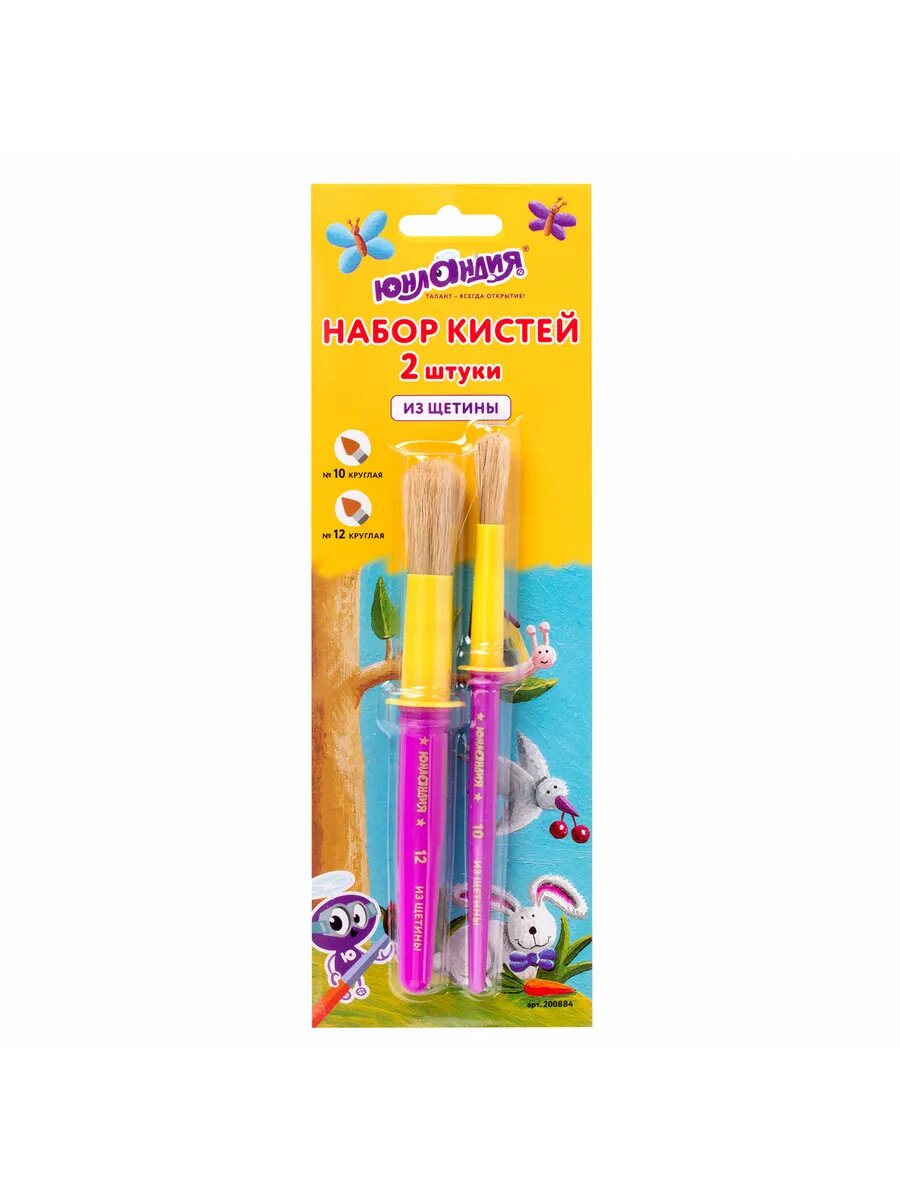 Кисти юнландия, набор 2 шт. (щетина, круглые №10, 12), блистер, 200884