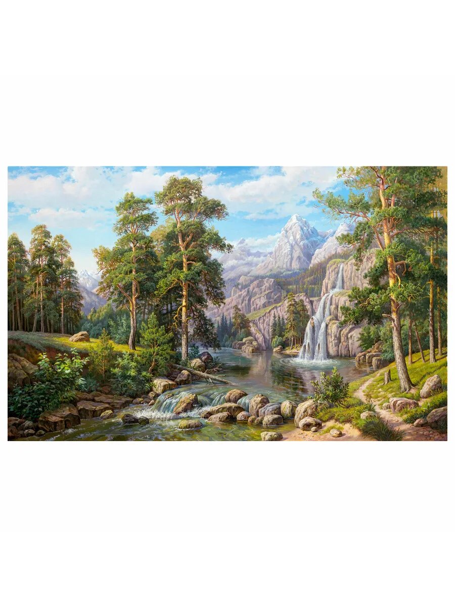 Алмазная мозаика без подрамника 40x50 см, картина стразами Горная речка, набор для рукоделия, творчества для детей и взрослых, Остров Сокровищ, 663867