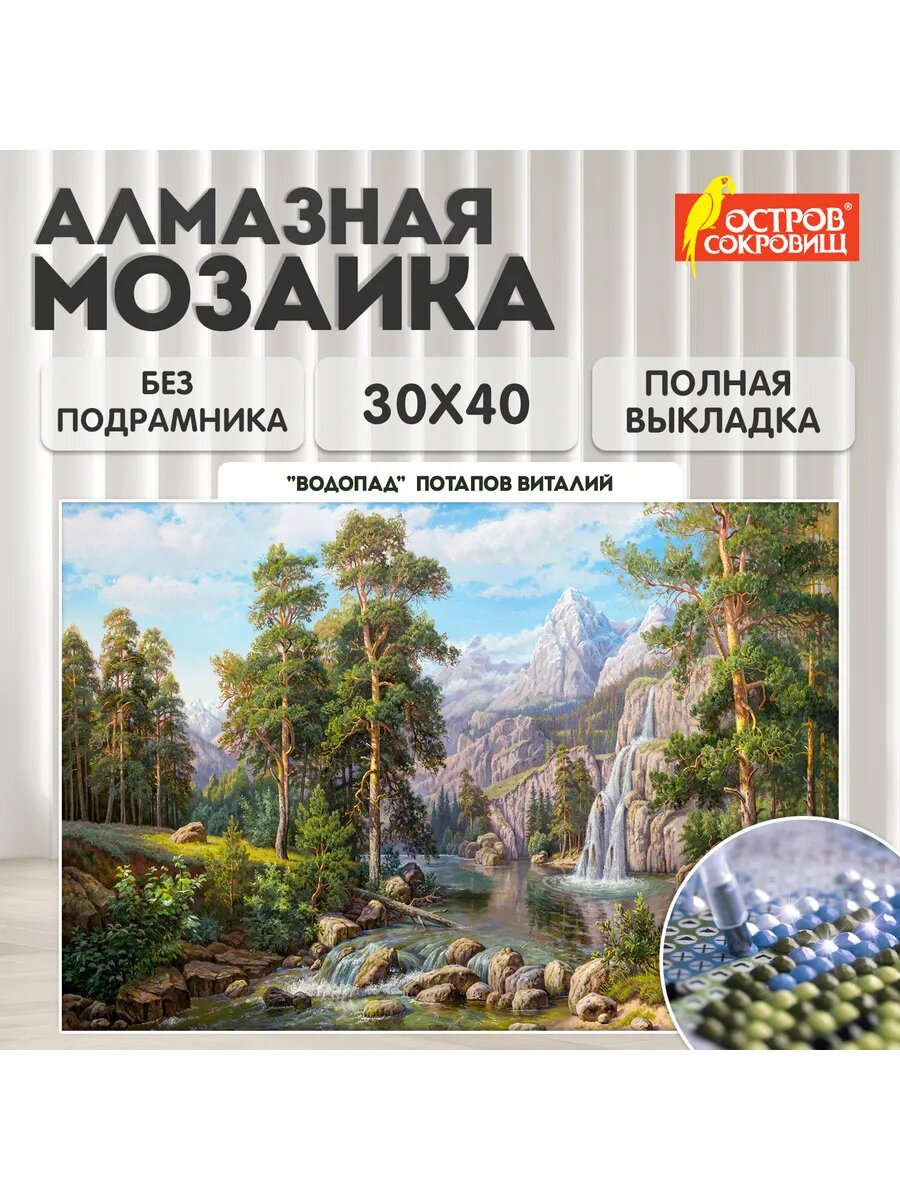 Алмазная мозаика без подрамника 30x40 см, картина стразами Водопад, набор для рукоделия и творчества для детей и взрослых, Остров Сокровищ, 663857
