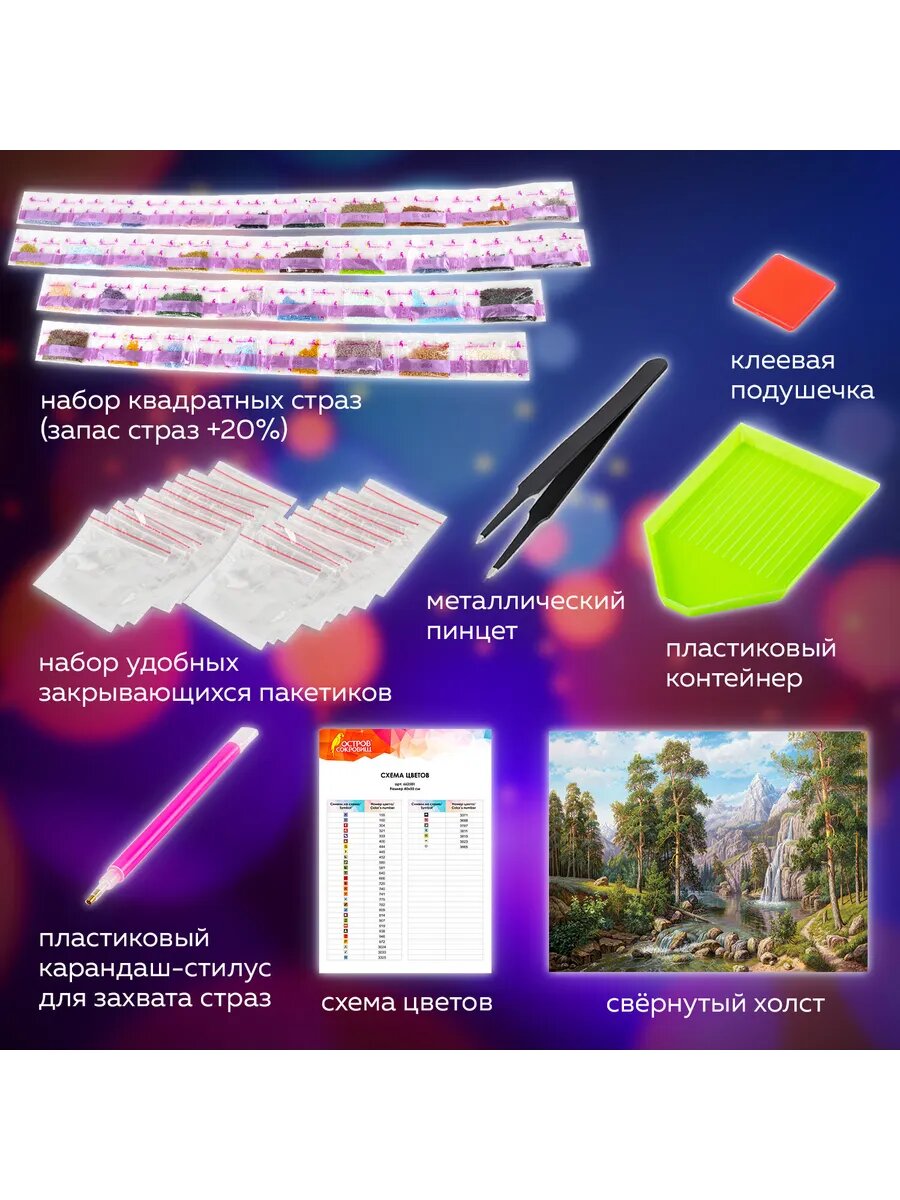 Алмазная мозаика без подрамника 40x50 см, картина стразами Горный ручей, набор для рукоделия, творчества для детей и взрослых, Остров Сокровищ, 663864