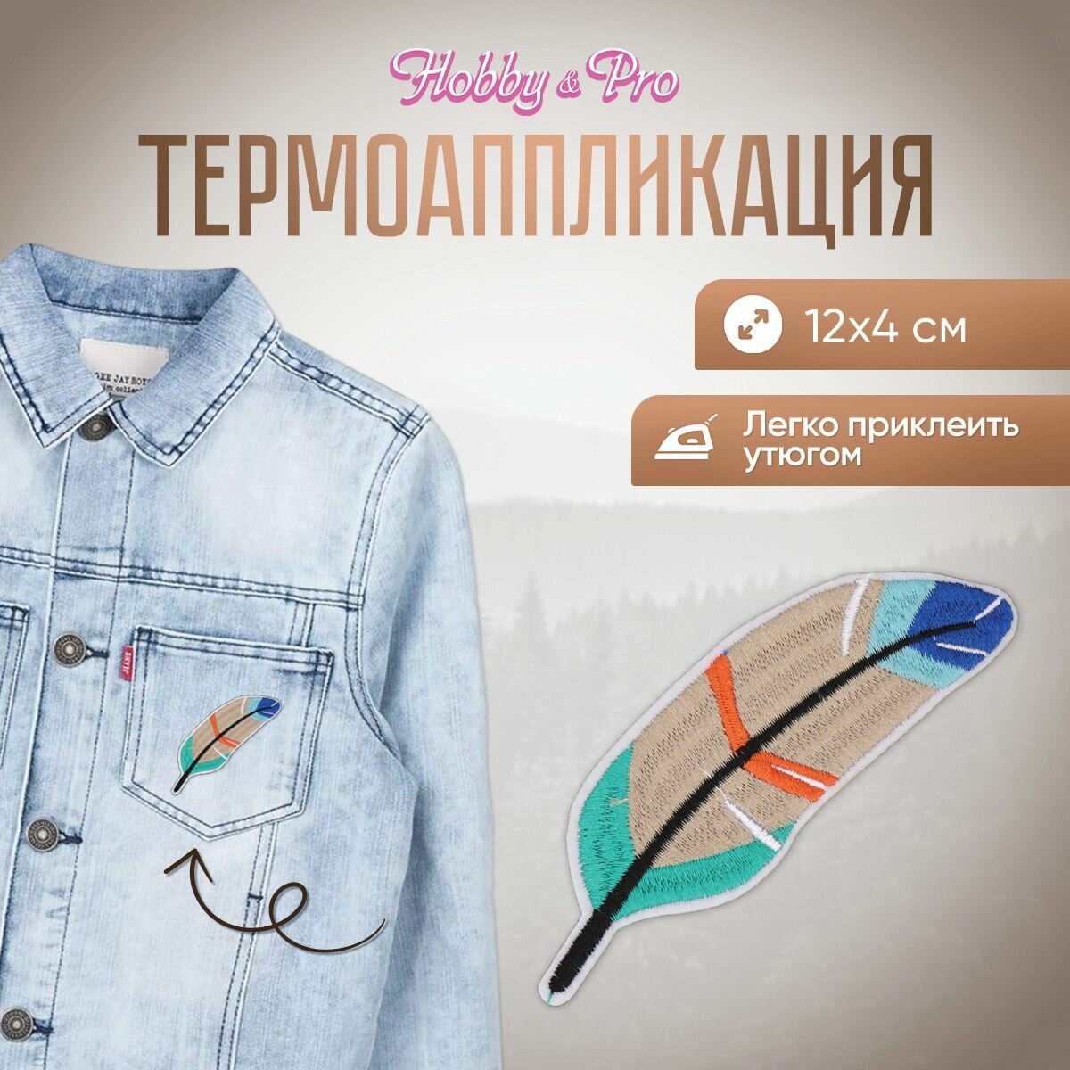 Купить Термоаппликация на одежду Hobby&Pro 'Перо', 12*4 см (синее, бежевое, зеленое)