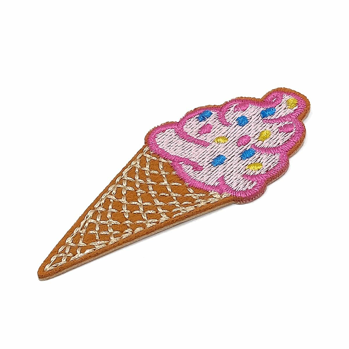 Термоаппликация на одежду Hobby&Pro 'Мороженое', 4*8 см (белый, розовый)