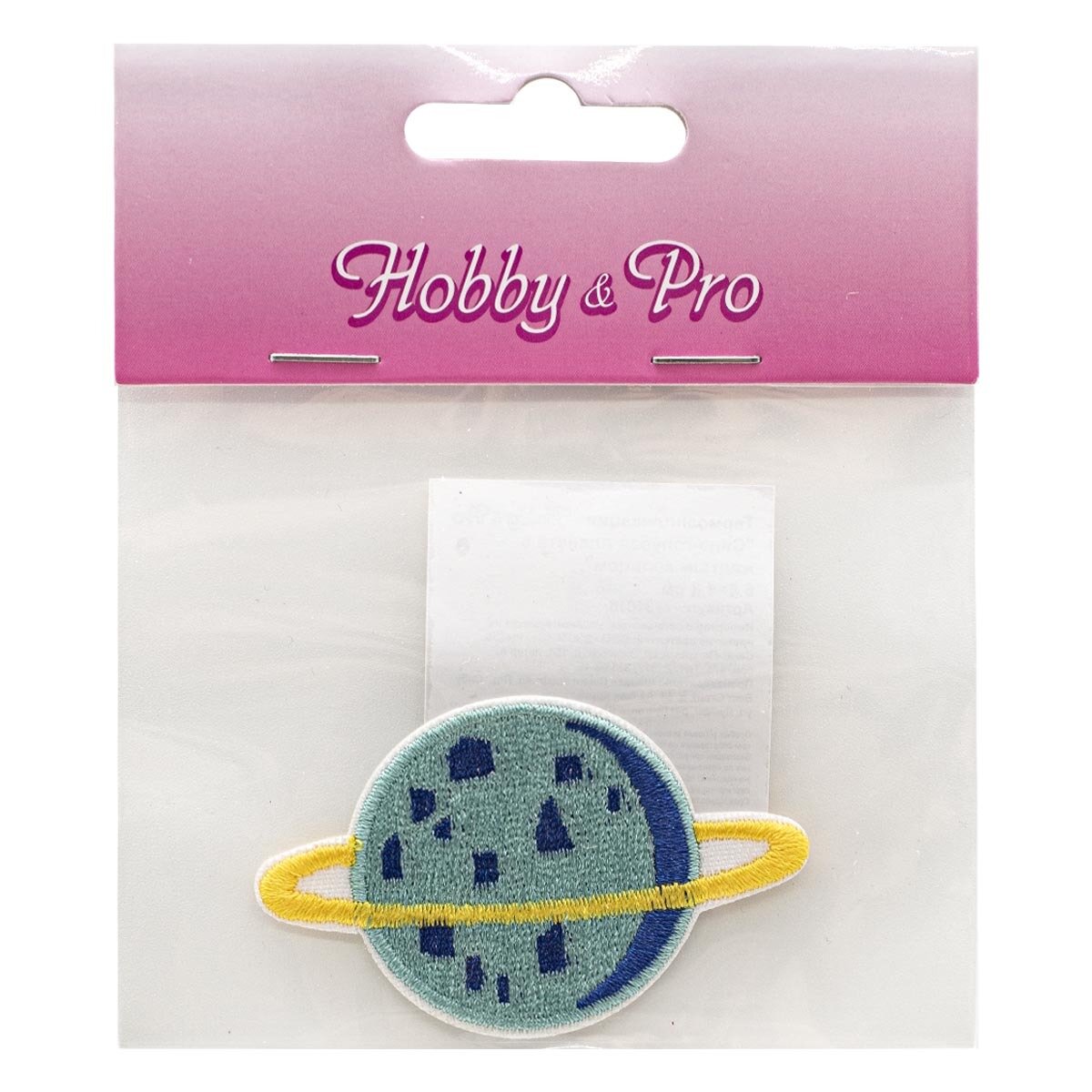 Купить Термоаппликация на одежду Hobby&Pro 'Сине-голубая планета с желтым кольцом', 6,8*4,2 см