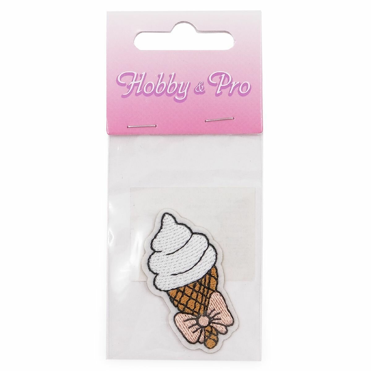 Термоаппликация на одежду Hobby&Pro 'Мороженое', 4*8 см (белый, розовый)