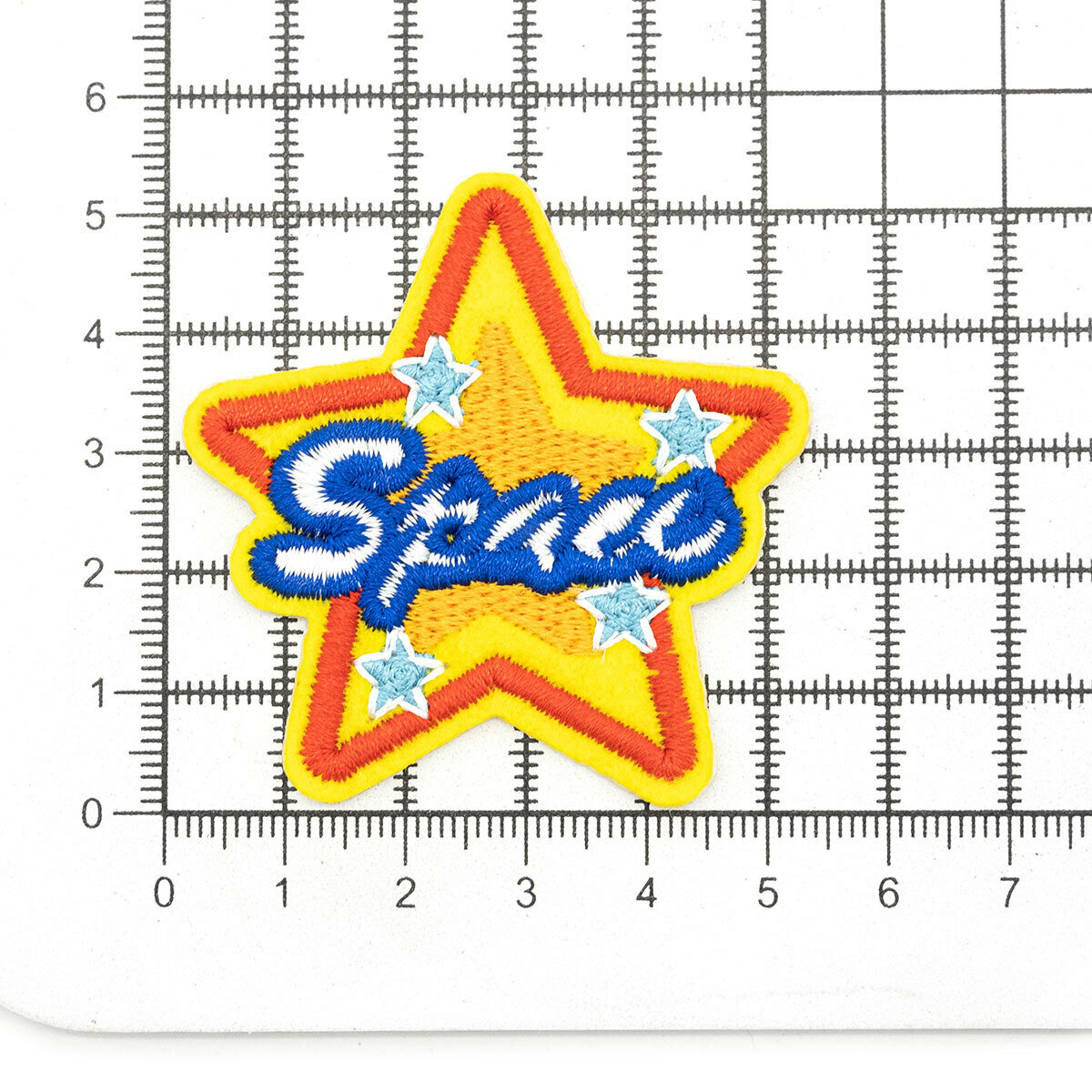 Купить Термоаппликация на одежду Hobby&Pro 'Звезда с надписью Space', 5,2*5,2 см (желтая, оранжевая, синяя)