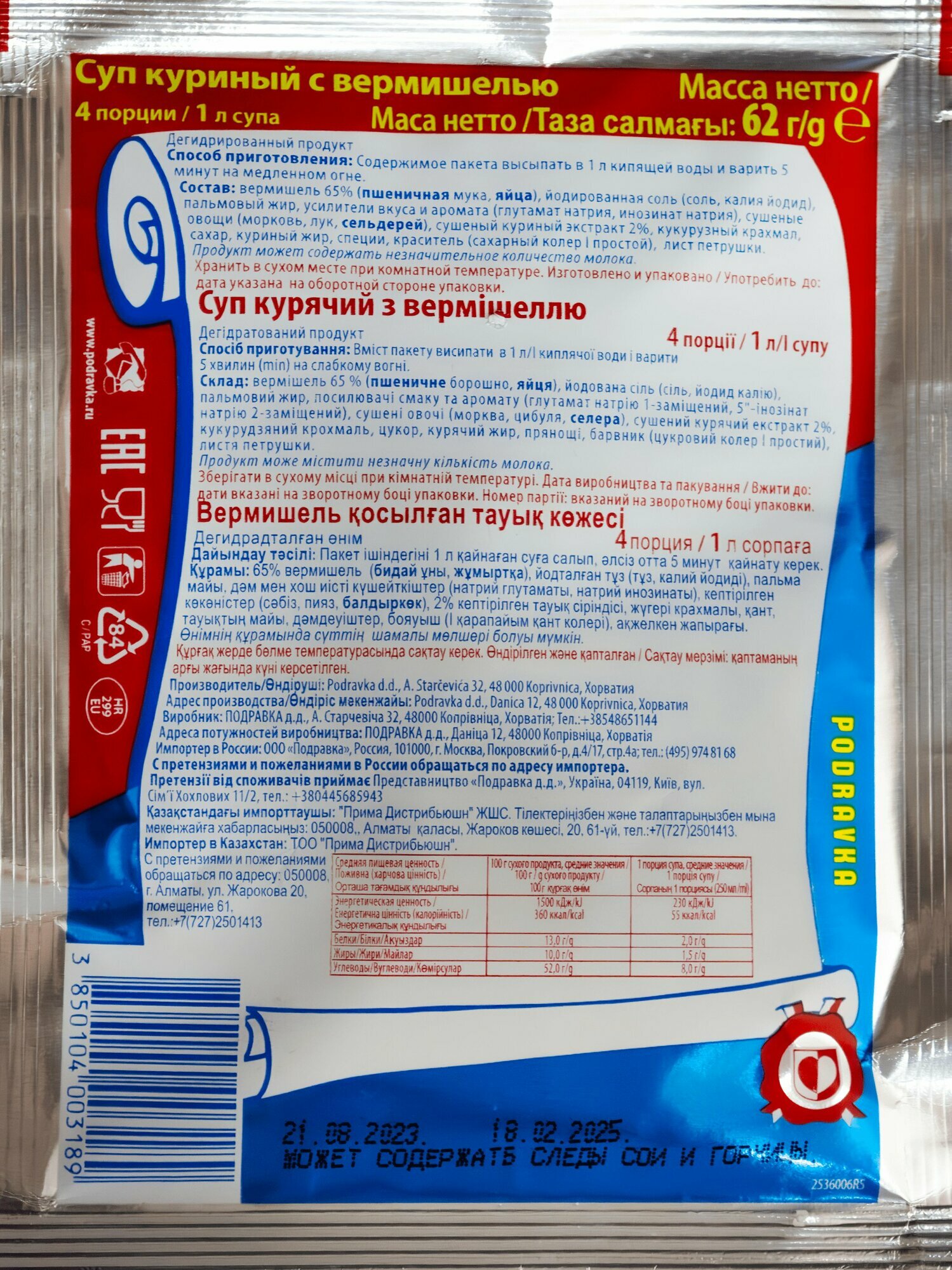 Ниже Вы можете прочитать отзывы на Суп куриный с вермишелью Podravka 62 г*5 шт, ознакомится с подробными характеристиками, посмотреть интересные обзоры и фотографии на Суп куриный с вермишелью Podravka 62 г*5 шт.