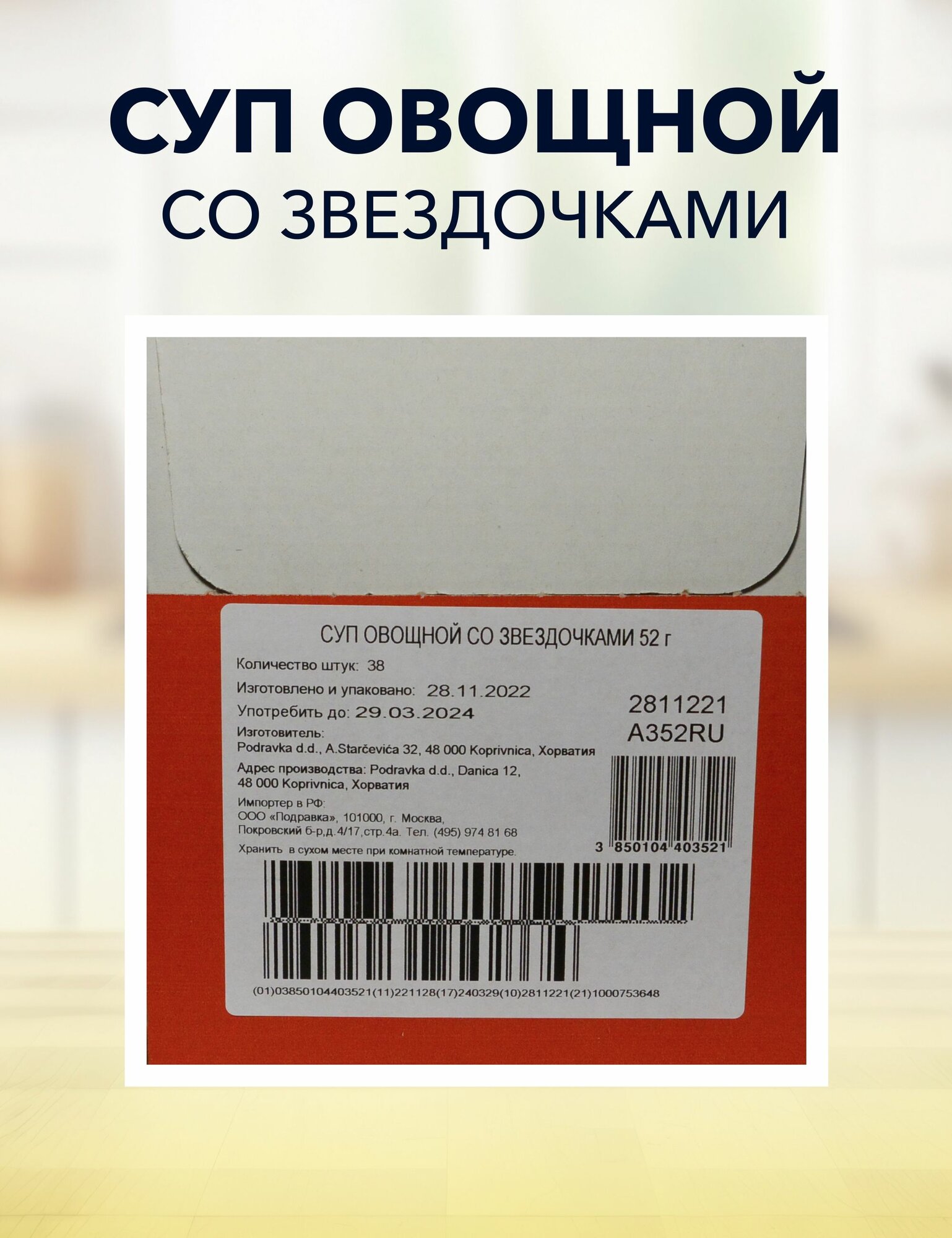 Купить Суп овощной со звездочками Podravka 52 г*38 шт