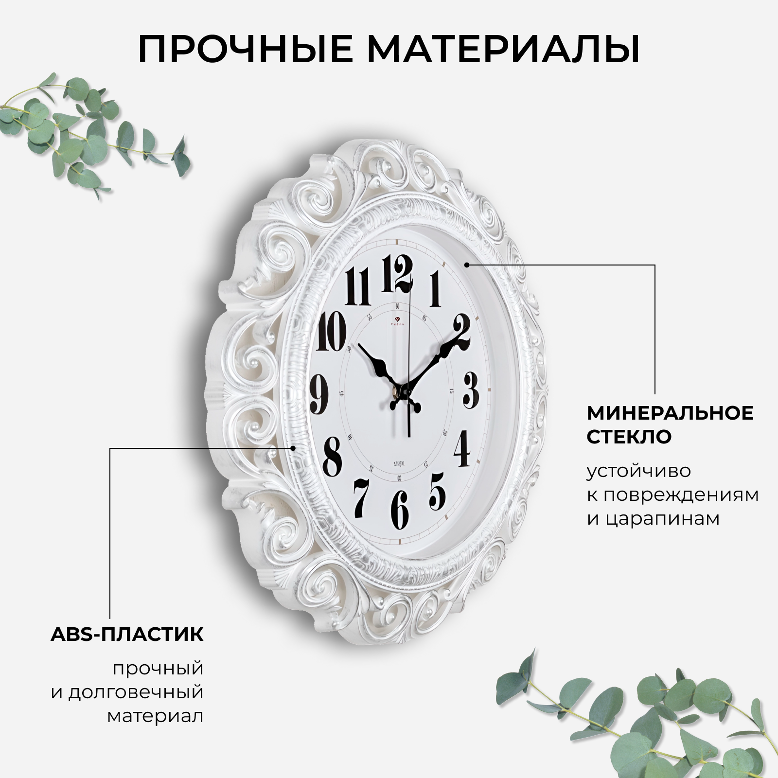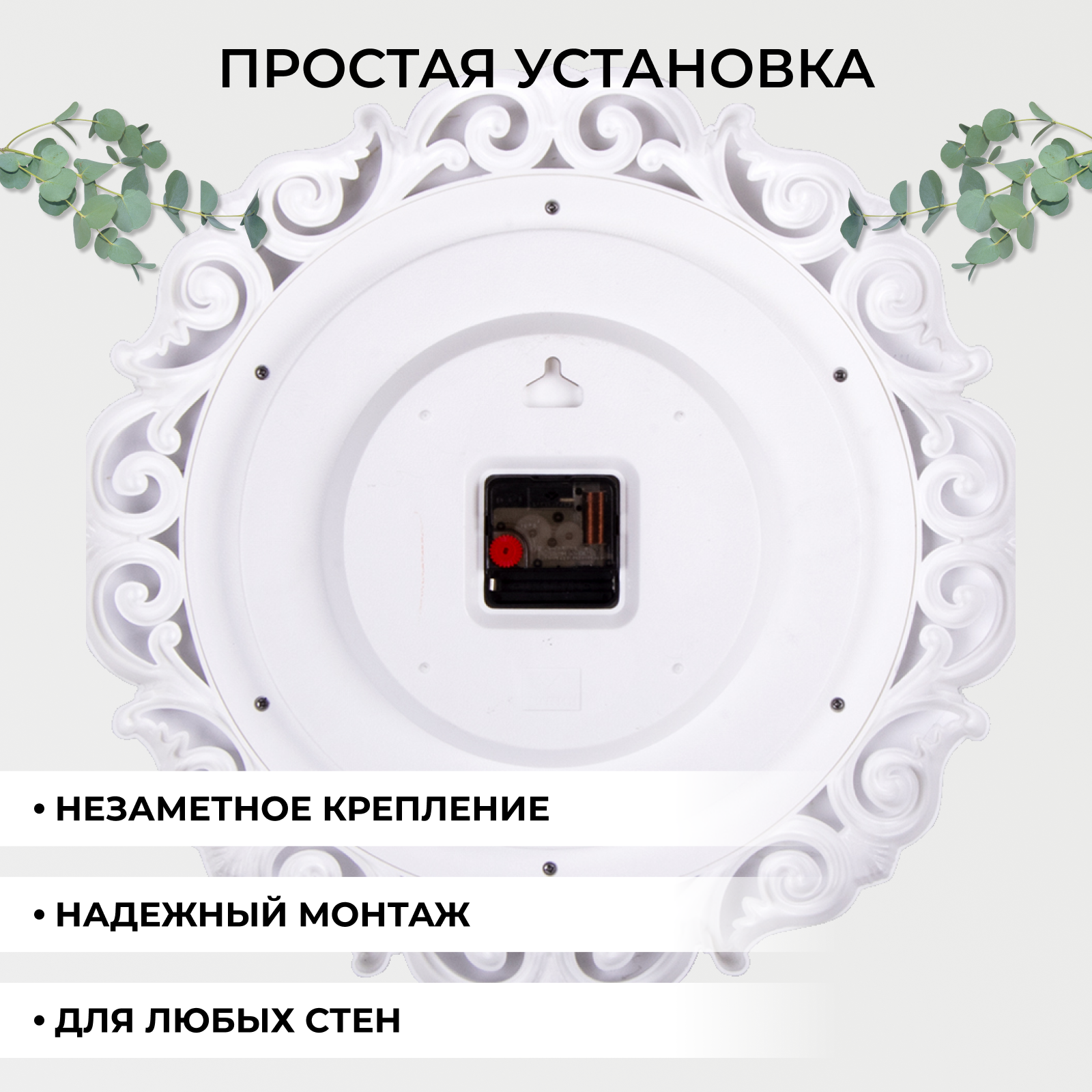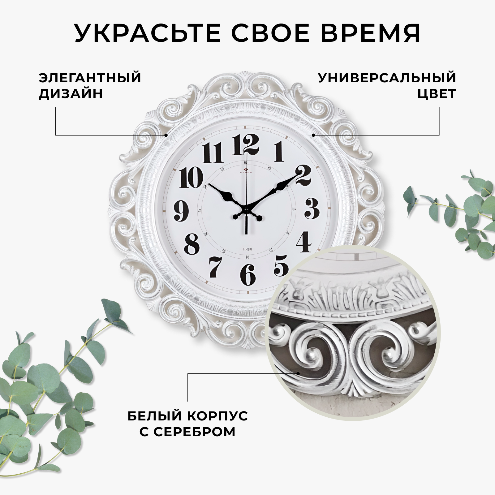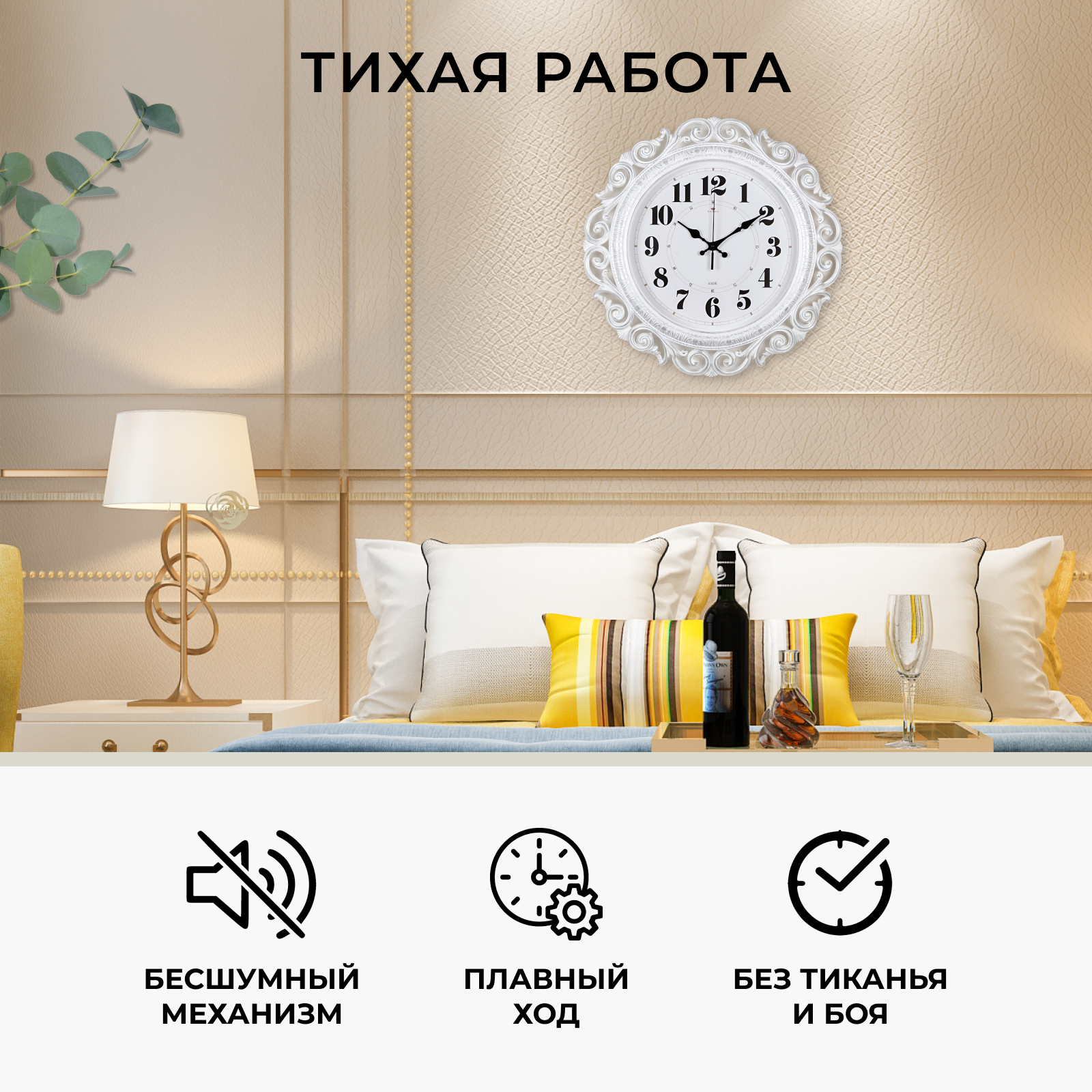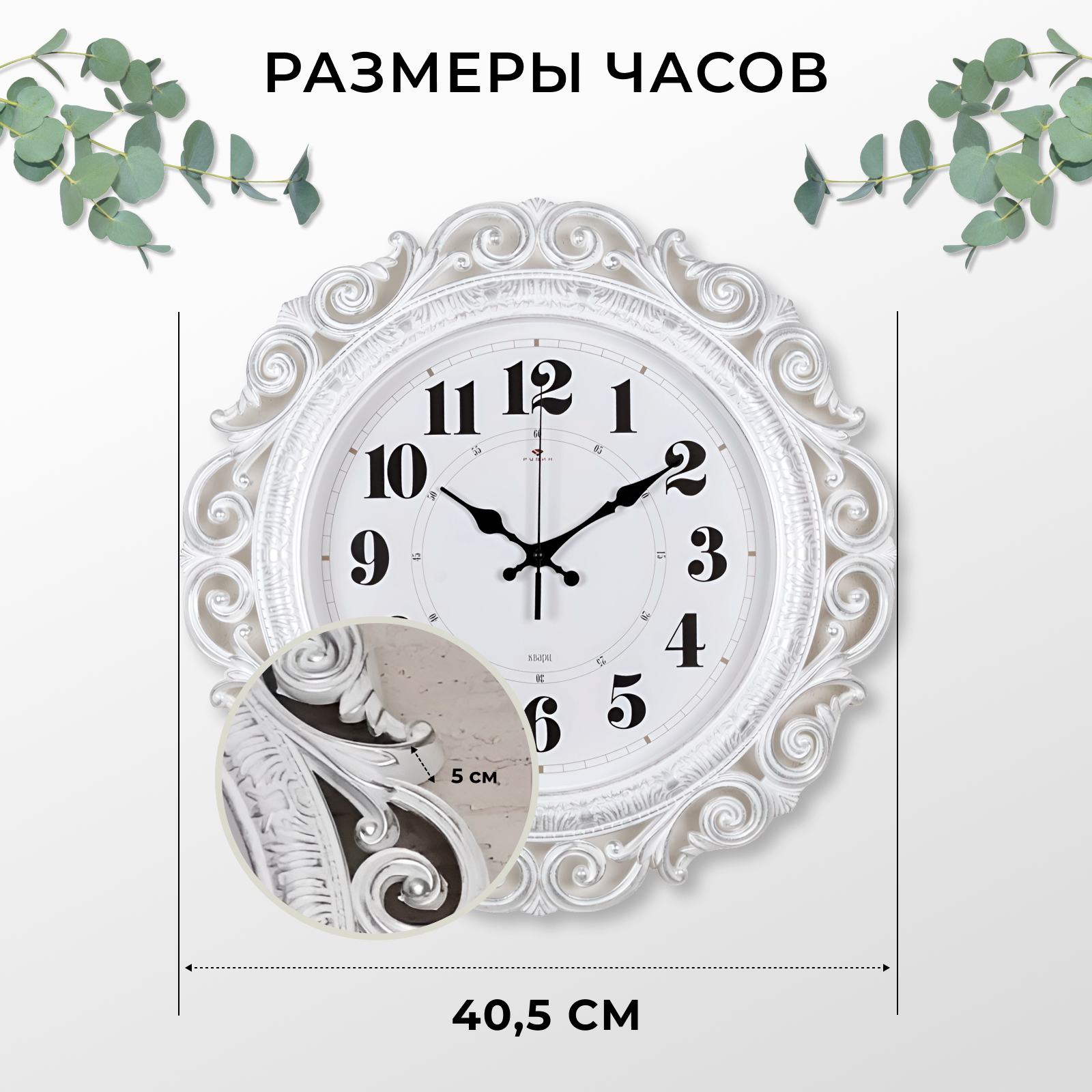 Купить Часы настенные бесшумные на батарейках, ажурные часы плавный ход диаметр 40 см, Белый + Серебро/ часы белые винтаж