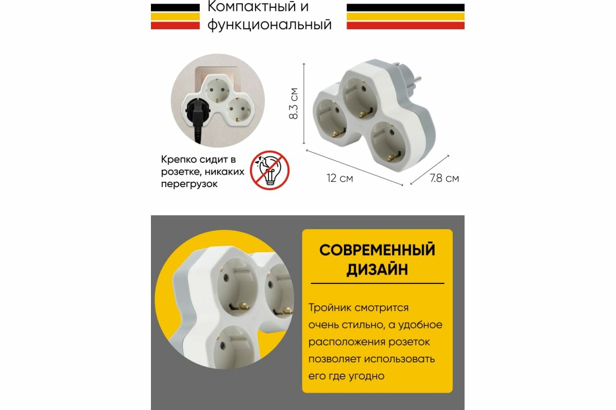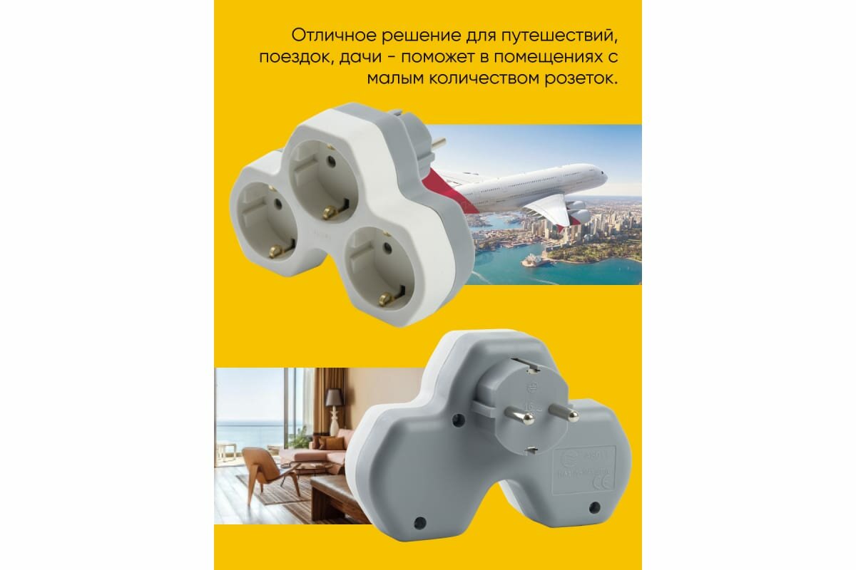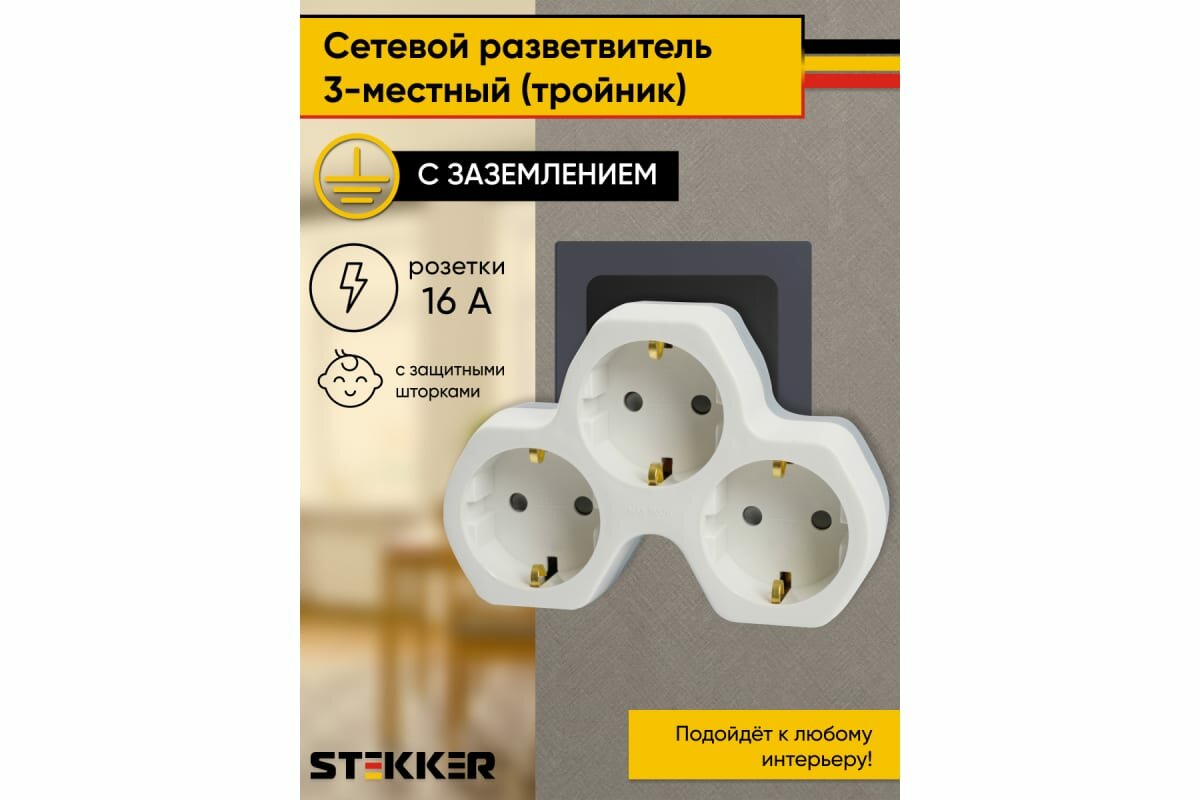 Разветвитель STEKKER 3 гнезда белый, серый ADP16-13-20 интересное: