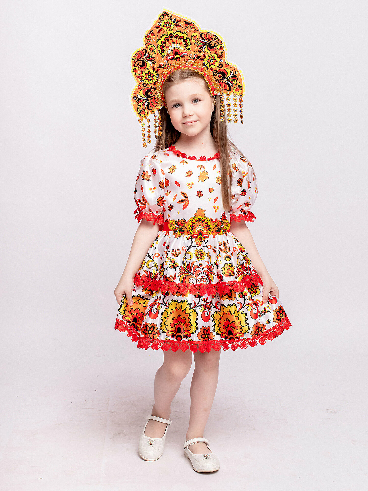 Купить Карнавальный костюм детский "Волшебница осень" с кокошником для девочки