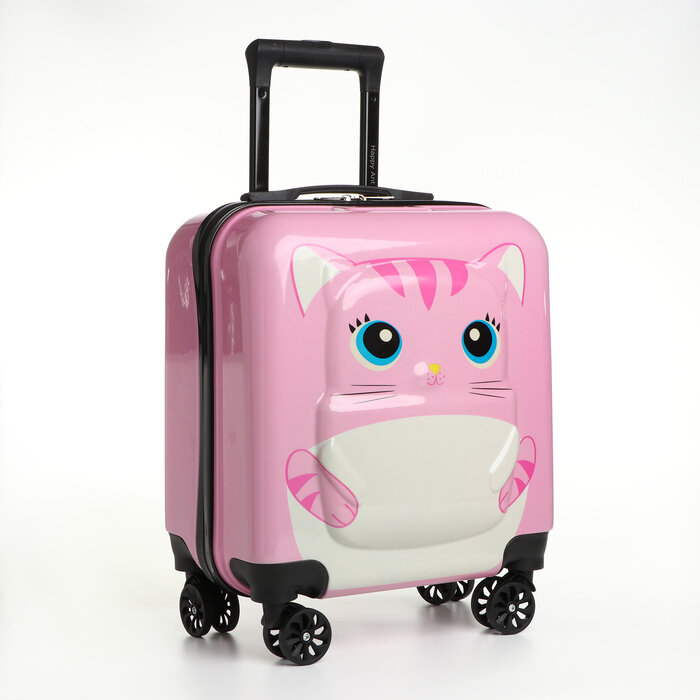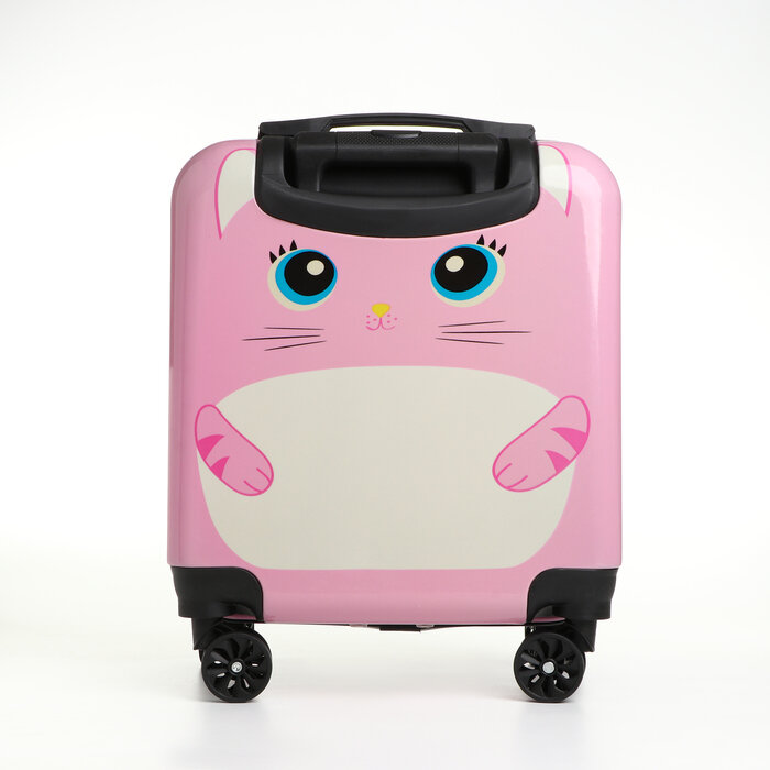 Чемодан дет. Котик 20", 35х20х40, отд. на молнии, 4 колеса, розовый