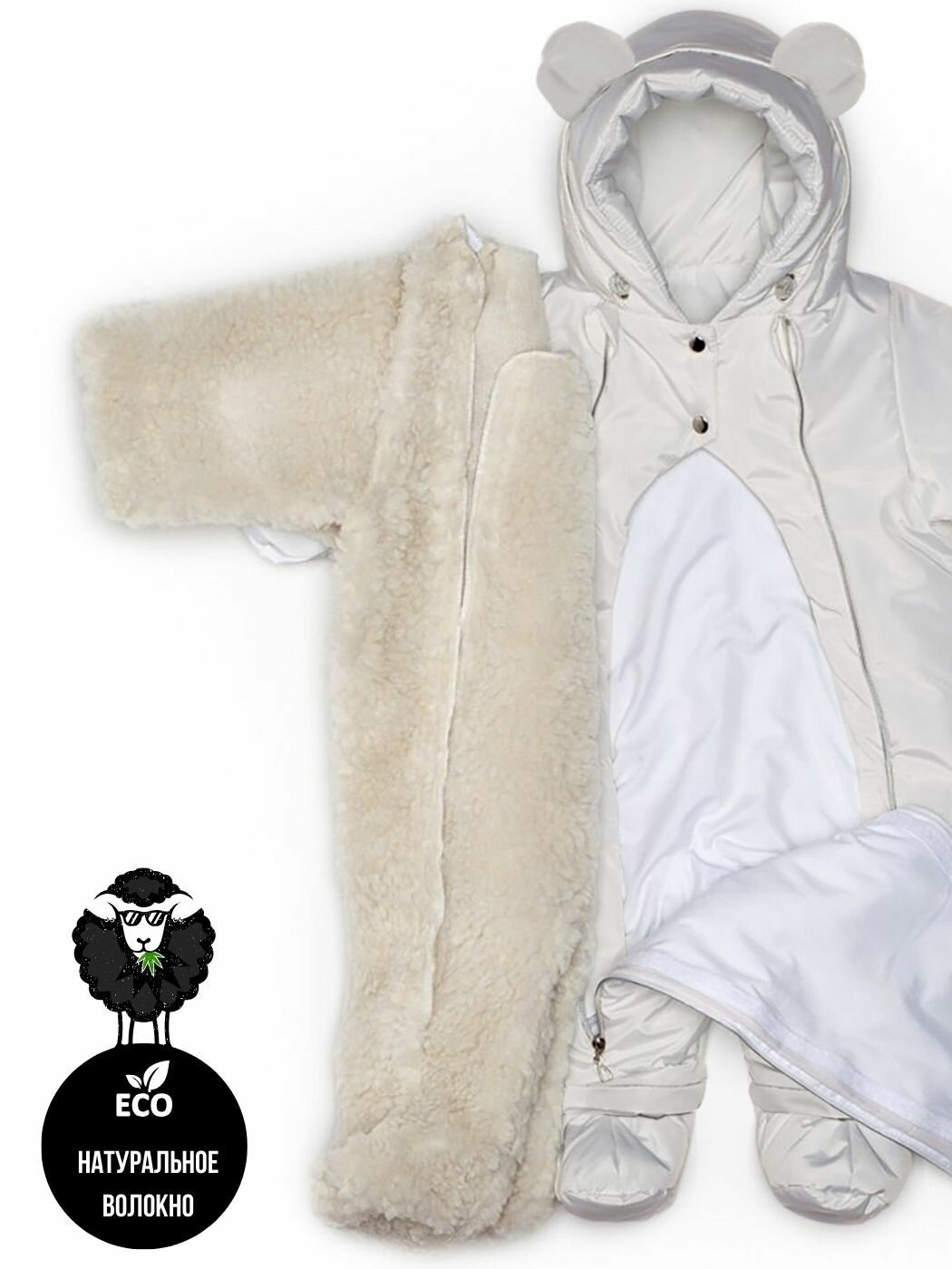 | Особенности модели | ветрозащита, водонепроницаемый, капюшон, мембрана, пинетки в комплекте, подкладка, съемный капюшон, ушки |