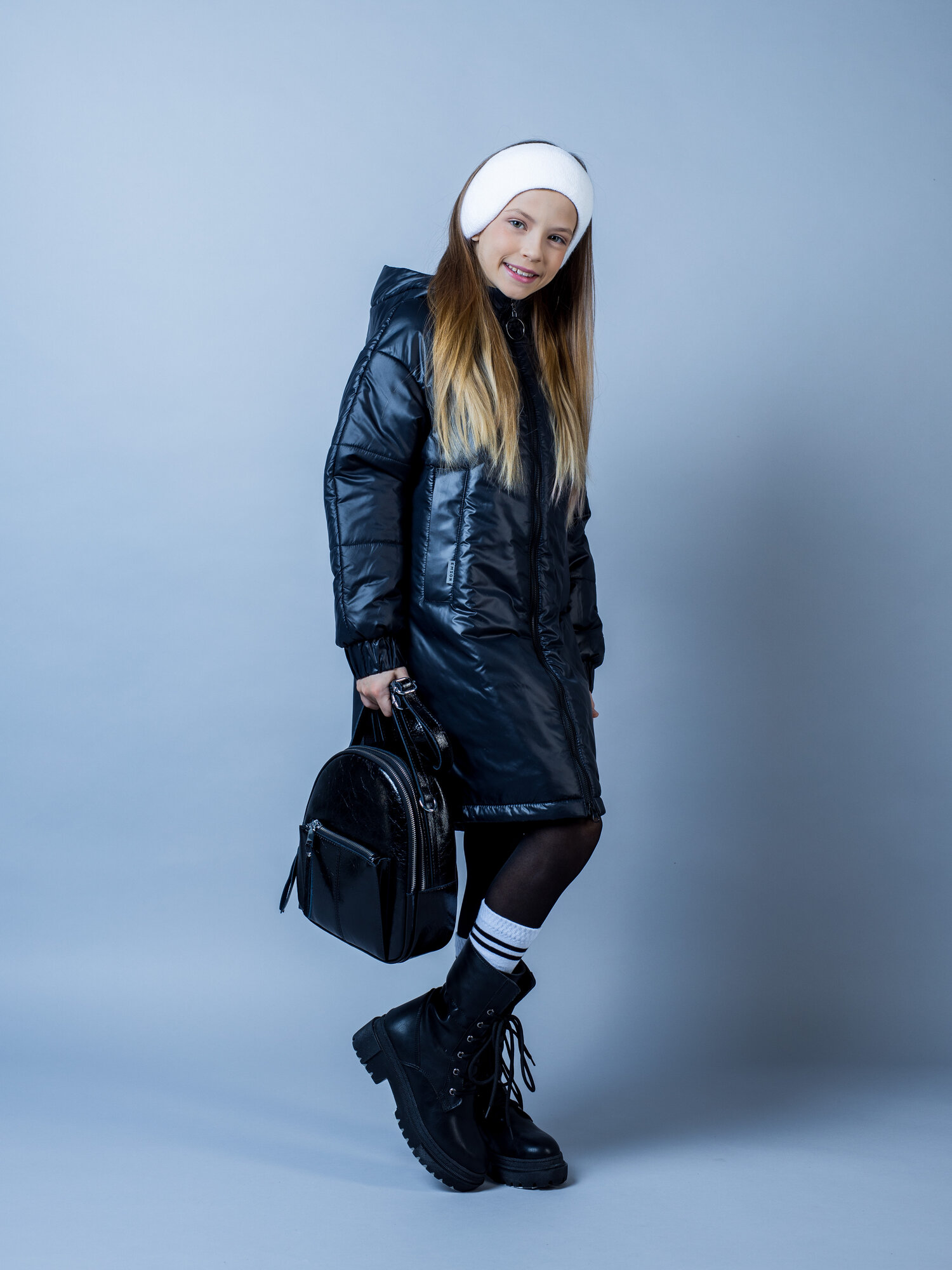 Полупальто демисезонное стёганое на искусственном пуху тёмно-синее для девочки Gulliver, р.110, мод.22403GMC4506