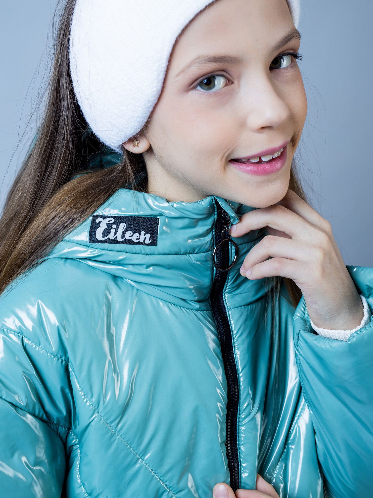 Пальто демисезонное утепленное с капюшоном зеленое 158