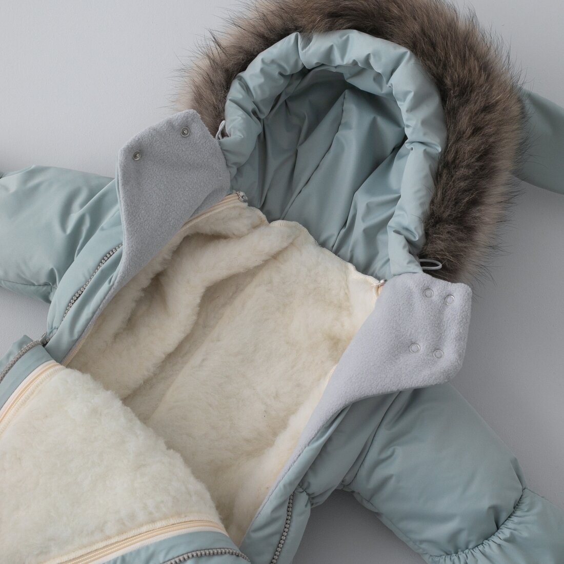 Комбинезон-трансформер "Зайкин NEW", с опушкой, с отворотами, 3 сезона, мята, 22-24