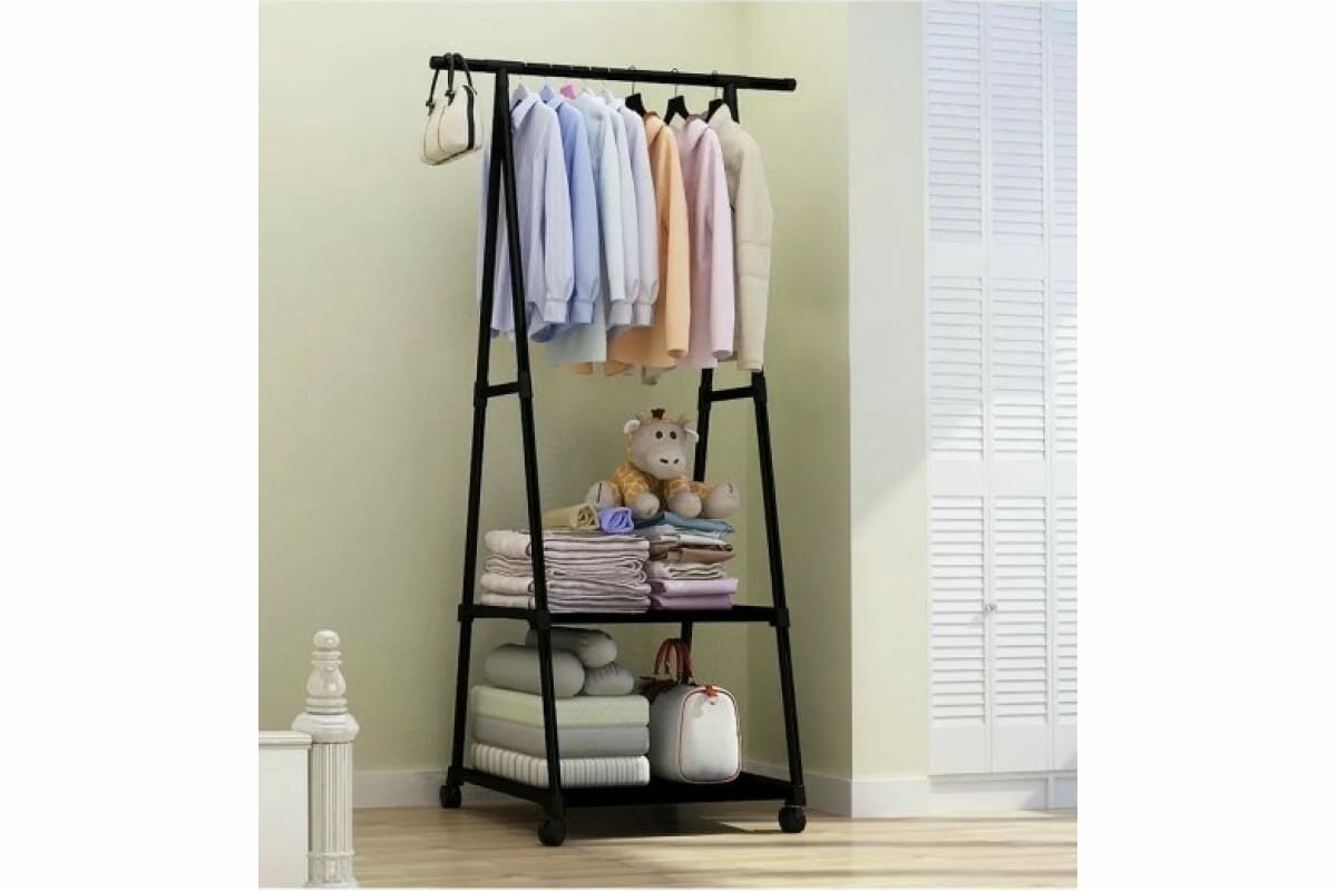 Напольная вешалка "Sokoltec" HW47881, металл, 55х160 см, черная, с полками, с колесами интересное: