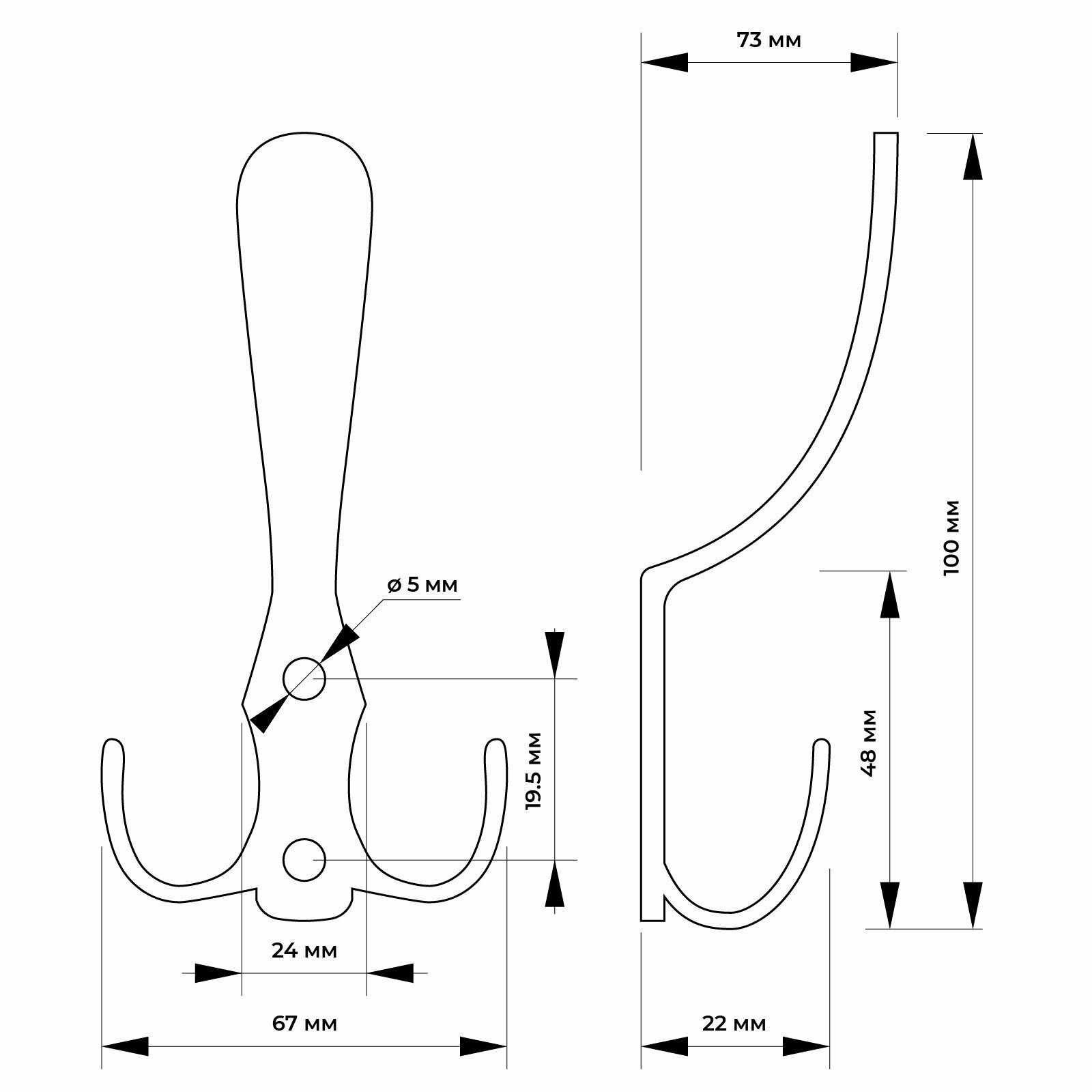 Крючок мебельный ТУНДРА TKT004, трехрожковый, бронза, металл интересное: