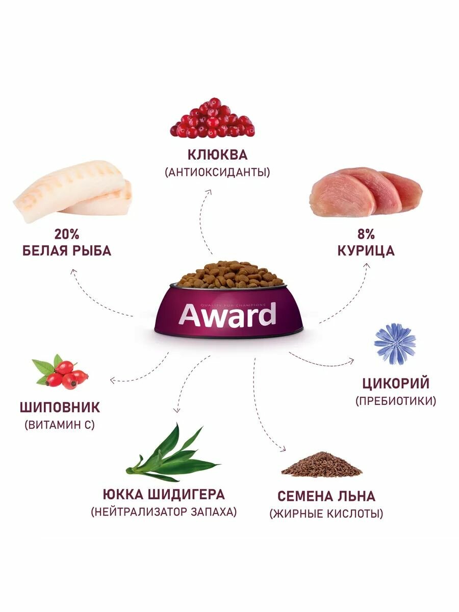 Купить AWARD Sterilized Сухой корм для взрослых стерилизованных кошек с белой рыбой 1,5 кг