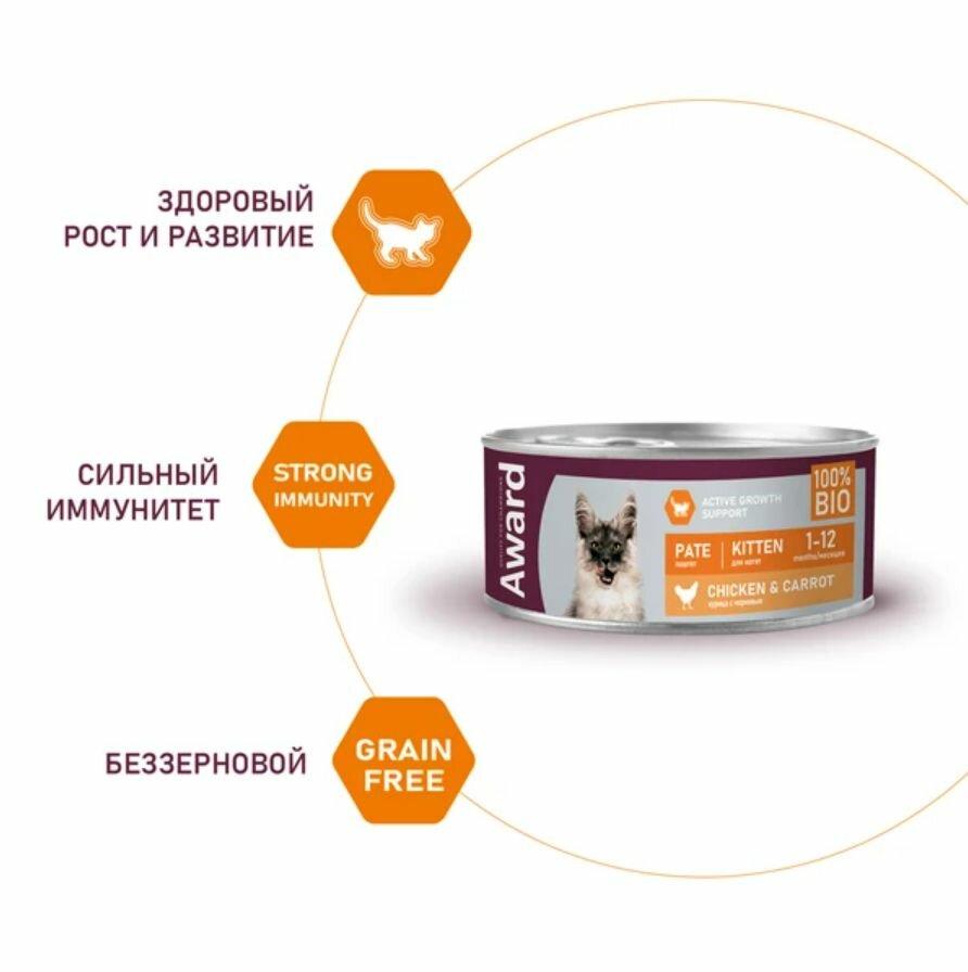 Влажный корм AWARD для котят, паштет из курицы с морковью (16шт х 100г)