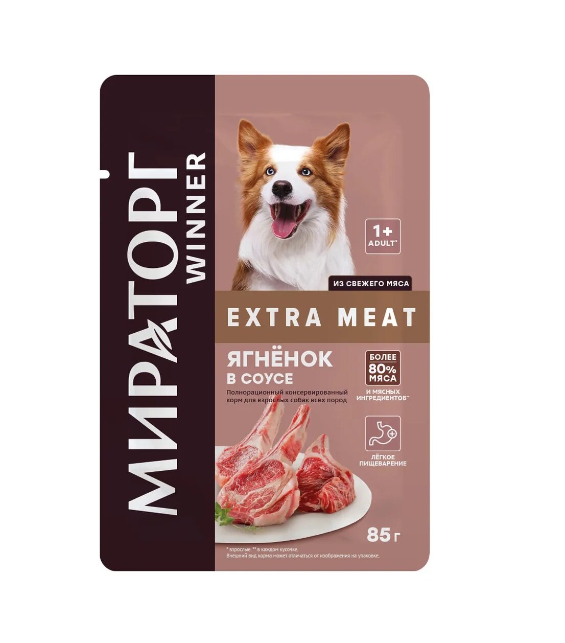 Купить Влажный корм Мираторг Extra Meat для собак с ягненком в соусе 24 шт х 85 г