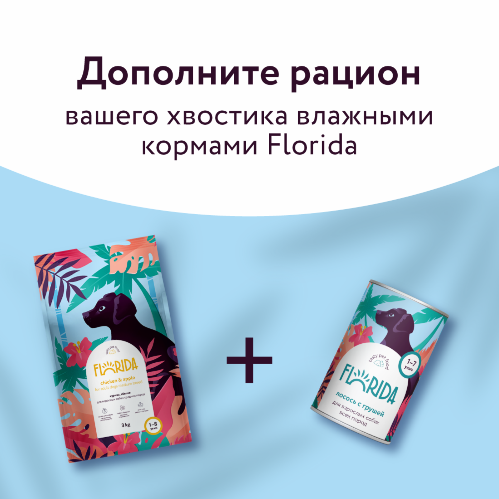 FLORIDA для взрослых собак средних пород с курицей и яблоком (3 + 3 кг)