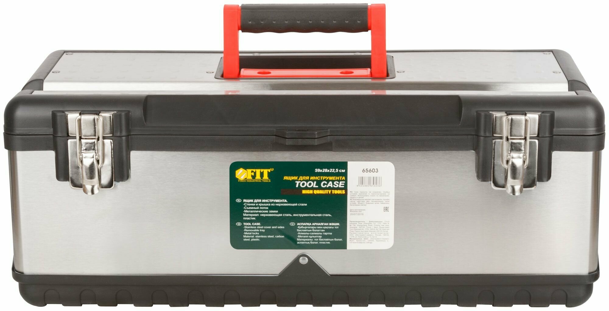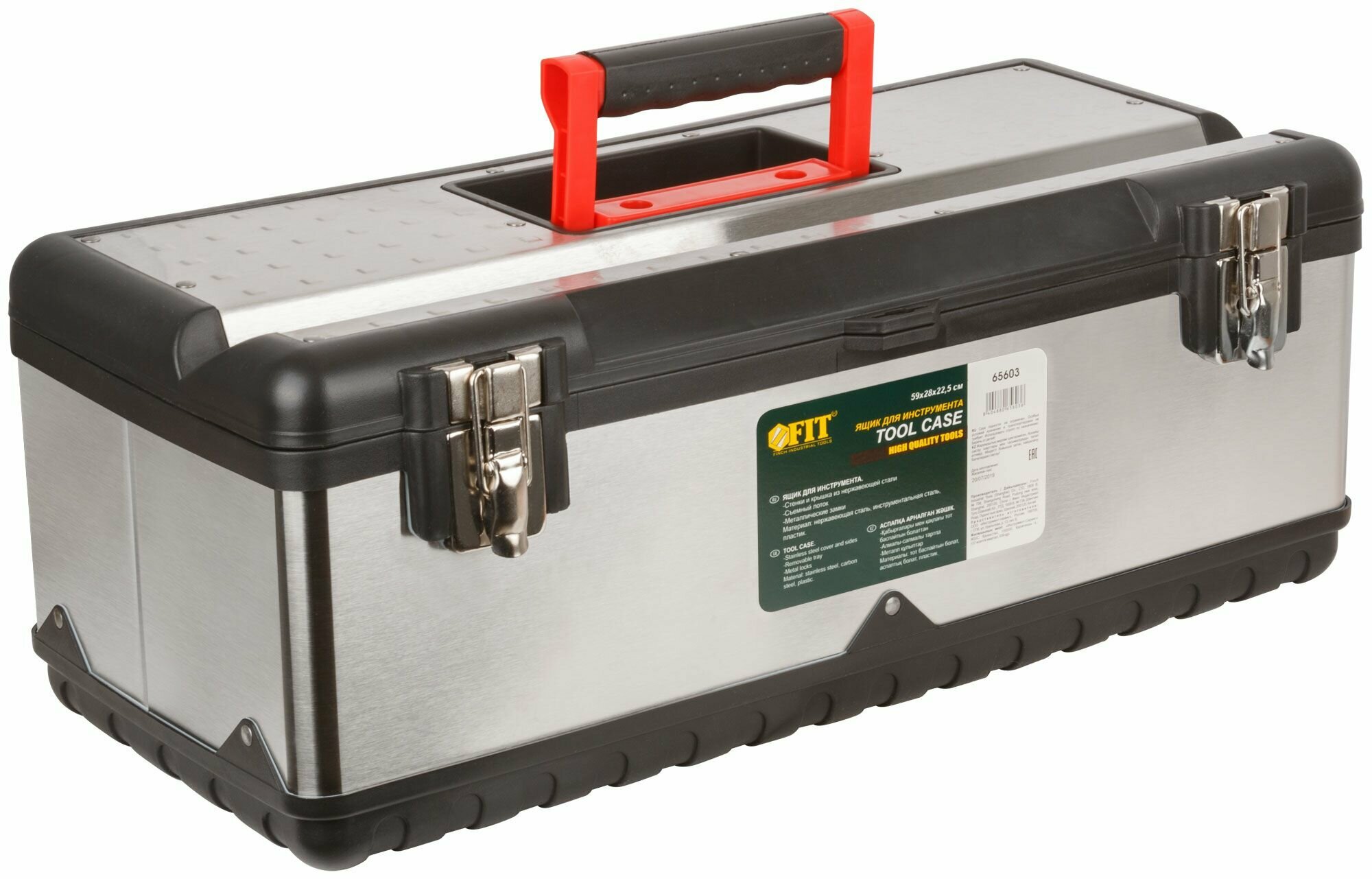 Купить Ящик для инструментов пластиковый 59 х 28 х 22,5 см FIT металлические замки, облицовка из нержавеющей стали + съемный лоток