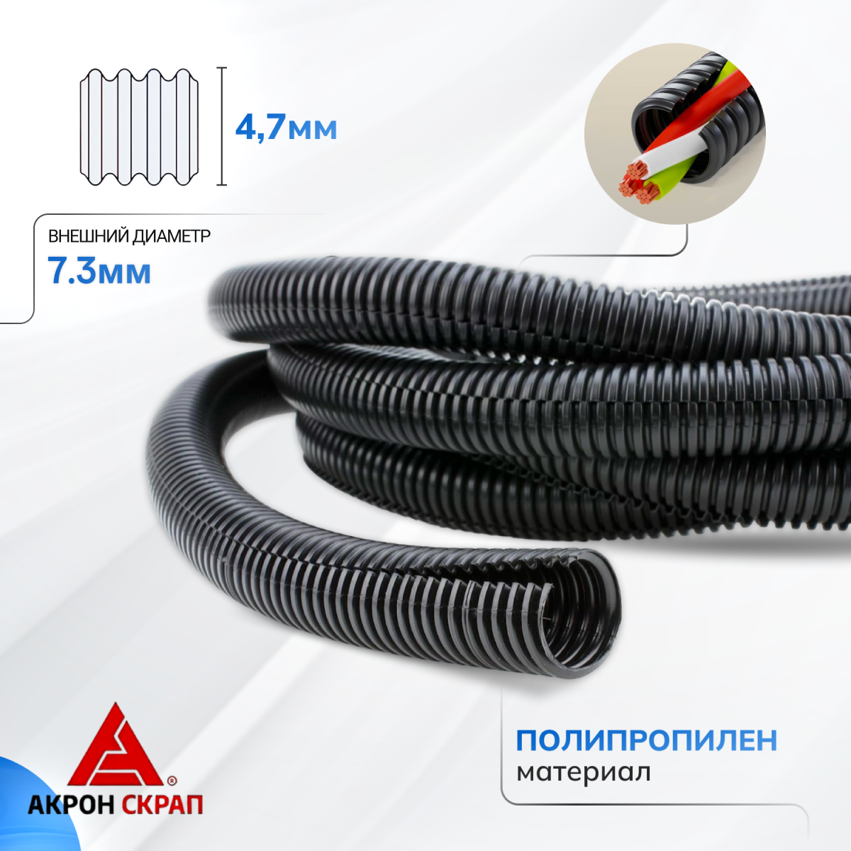 Гофра для проводов полипропиленовая - диаметр 4.7 мм 50 м