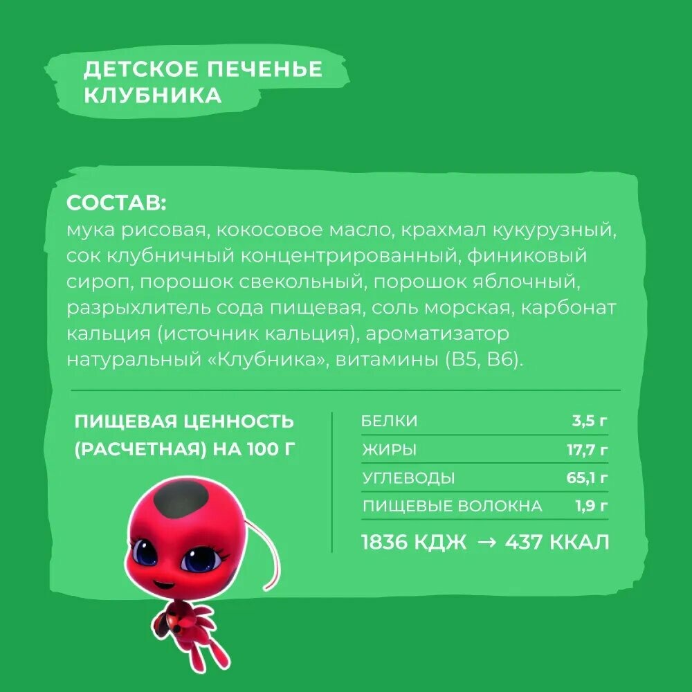 Печенье детское без сахара Take a Bitey / Bite Волшебник Изумрудного Города, Клубника, без глютена, 8 шт по 125 гр