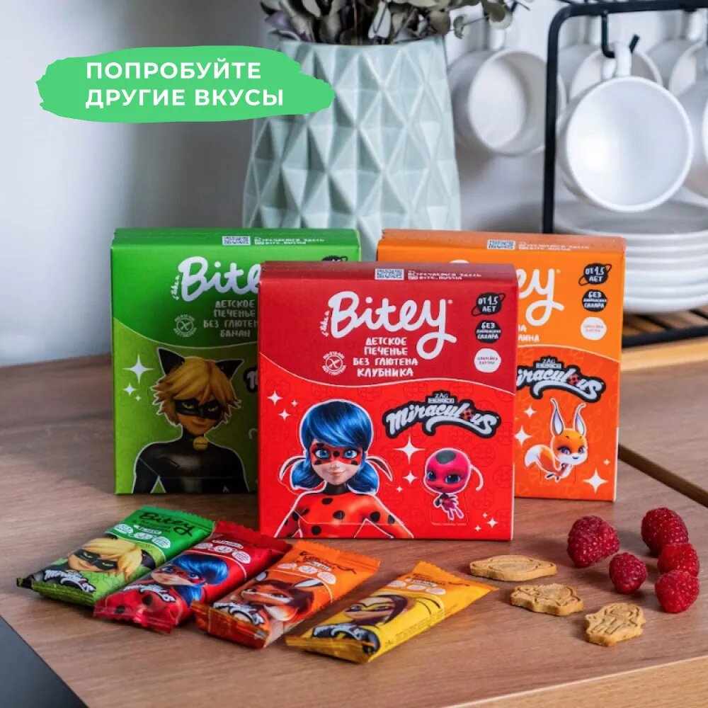 Печенье детское без сахара Take a Bitey / Bite, Сливочная малина, без глютена, 8 шт по 125 гр