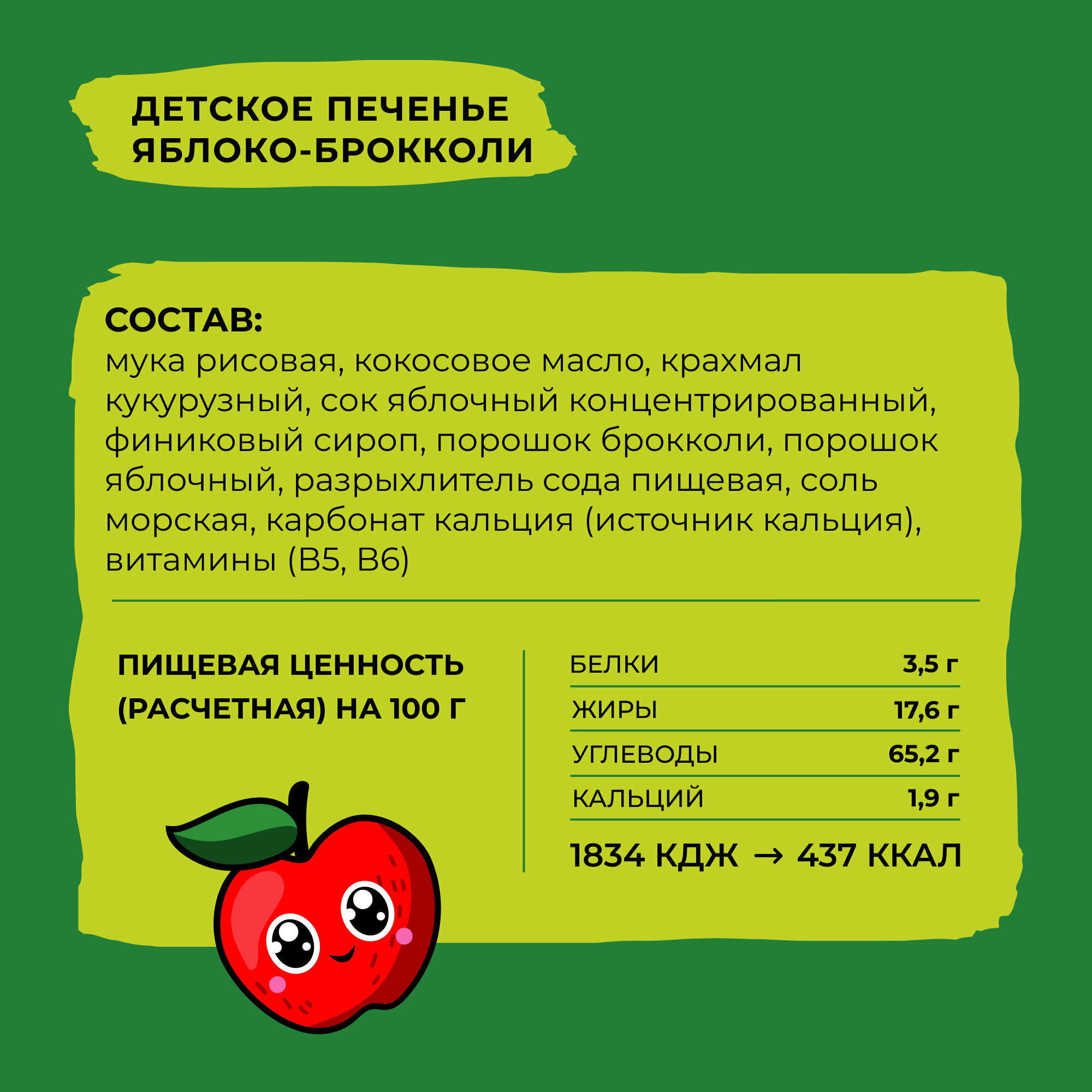 Купить Печенье детское без сахара Take a Bitey / Bite, Яблоко и брокколи, без глютена, 8 шт по 125 гр