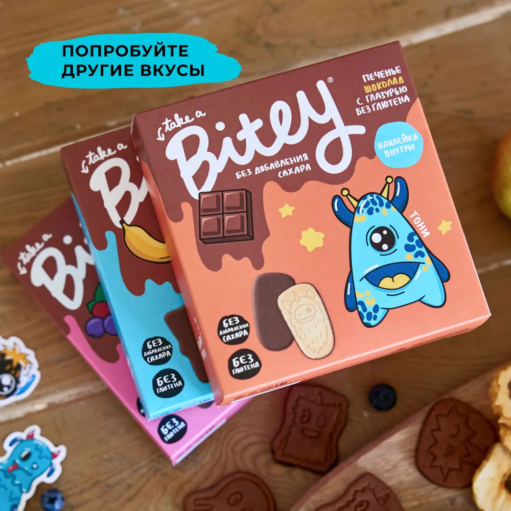 Купить Печенье детское (набор) без сахара шоколадное Take a Bitey / Bite, Шоколад, без глютена, 4 шт по 125 гр